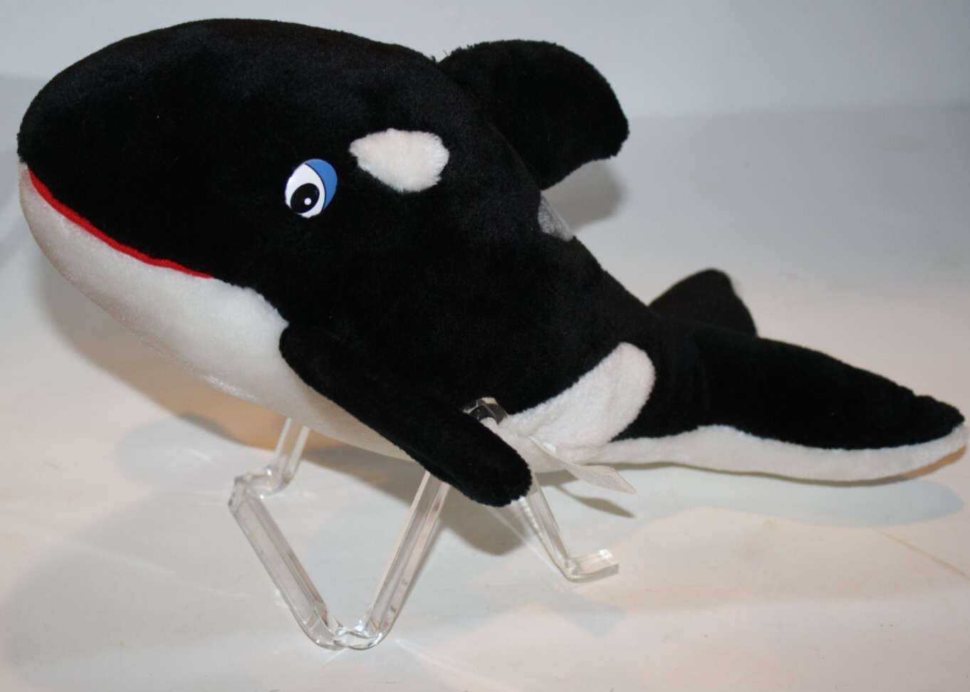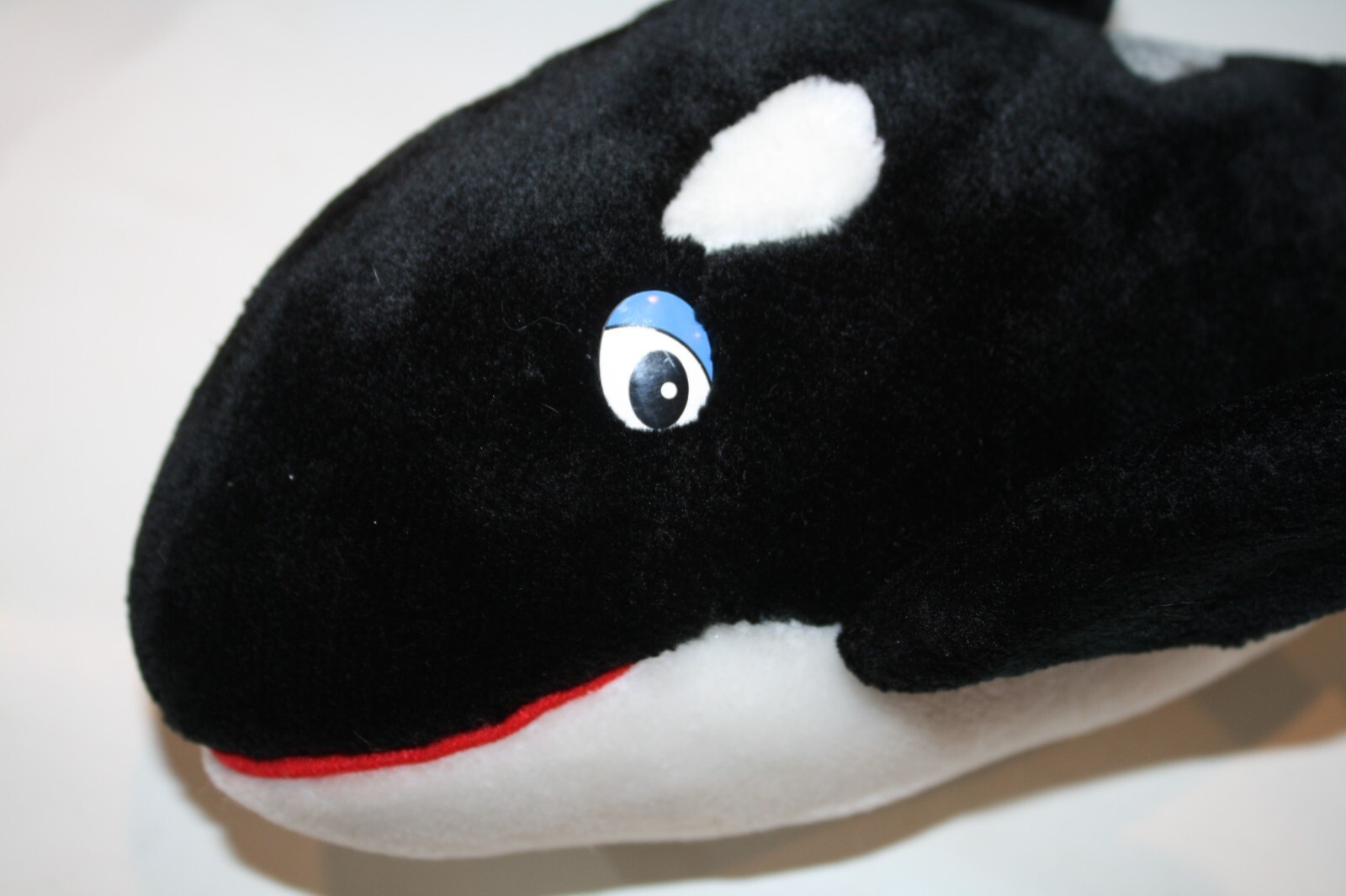 Sea World, Approx 15", Shamu, Orca, Killer Whale, Plush, Stuffed Animal, Black and White, Soft Toy with Blue Eyes