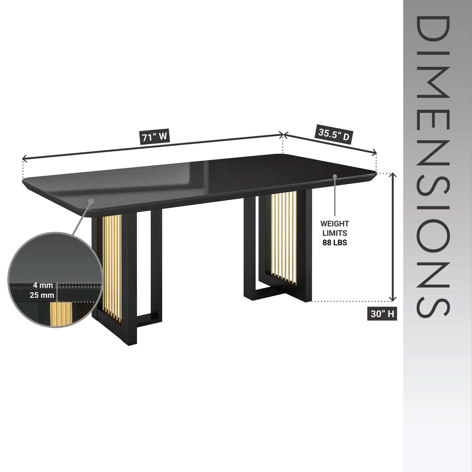 Modern 6 Seater Dining Table with Gold Accents, Black Gold