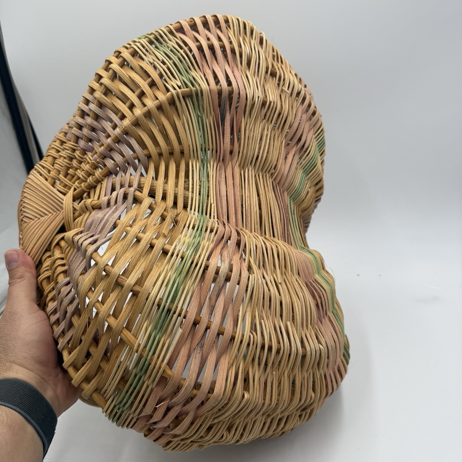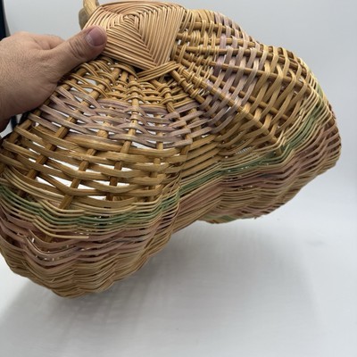 The Vintage Primitive Natural Buttocks Basket is a unique and charming decorative collectible that features a woven pattern in an oval shape. Made from splint wood with a raw wood tan color, this medium-sized basket has a grapevine handle for added character. Perfect for all occasions, this original piece exudes a playful yet rustic appeal with its buttocks theme, making it a whimsical addition to any space. With its natural finish and functional closure type, this basket is sure to be a conversation starter in any home decor setting.