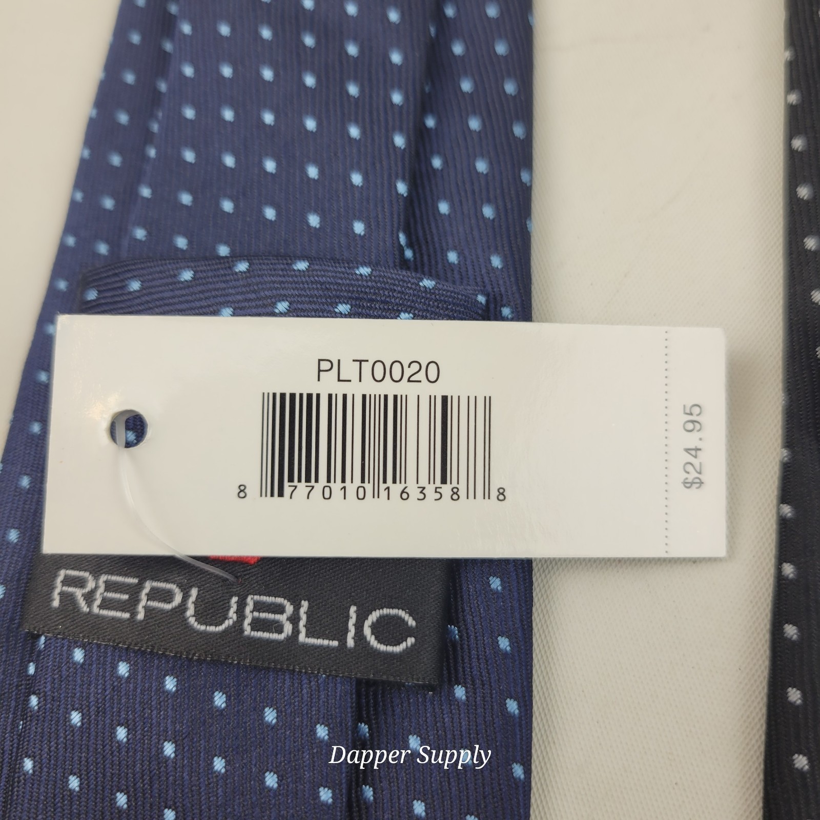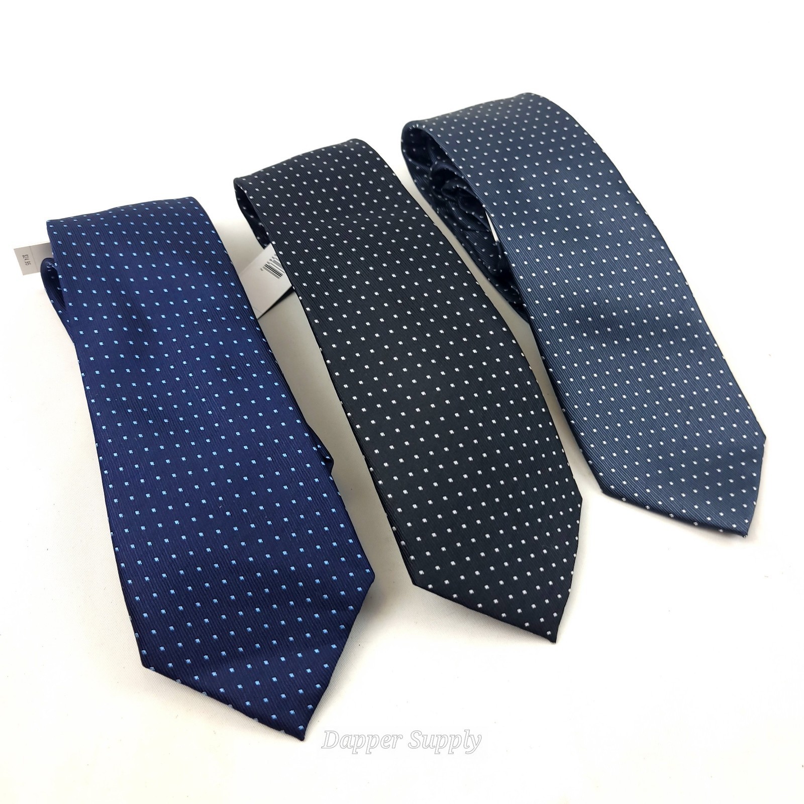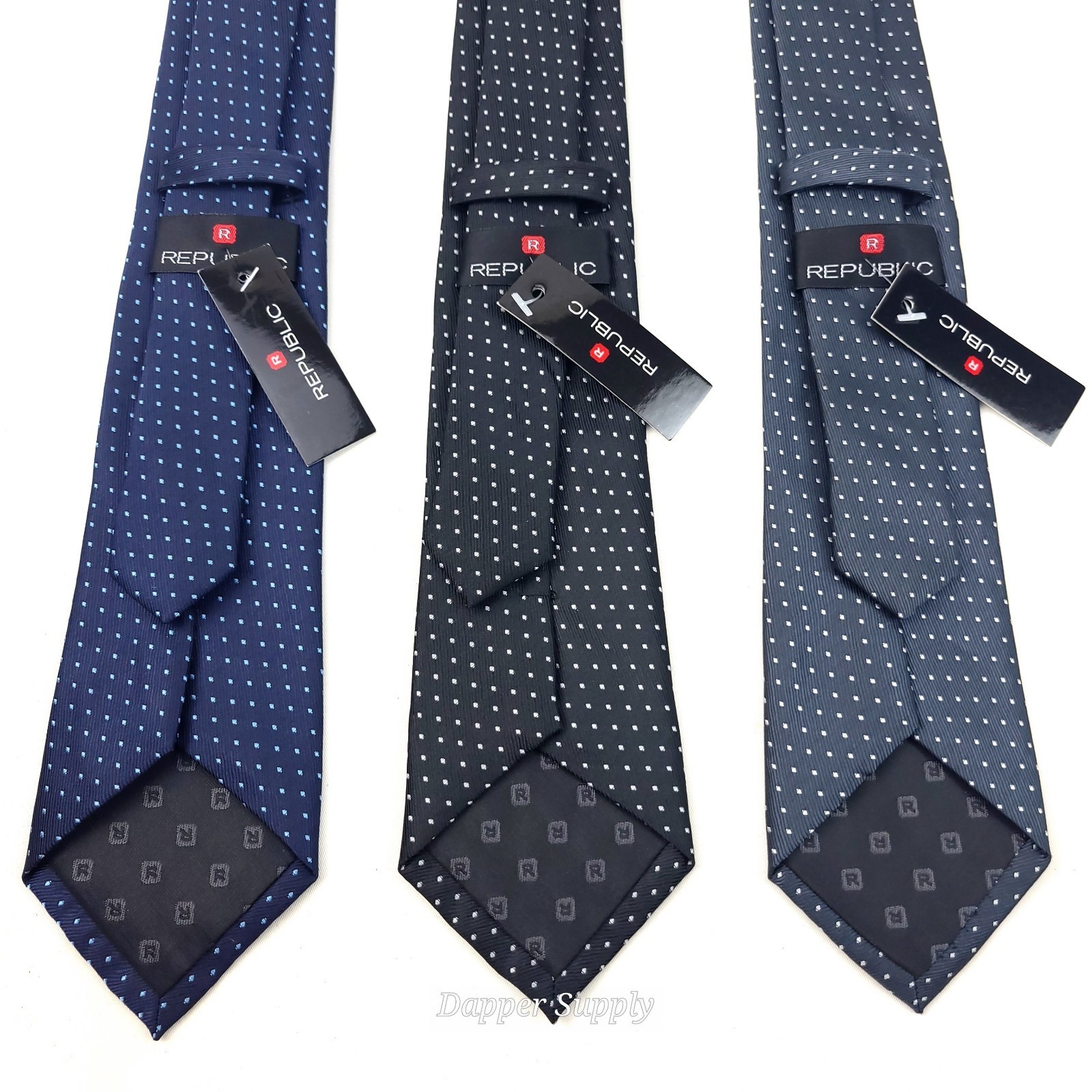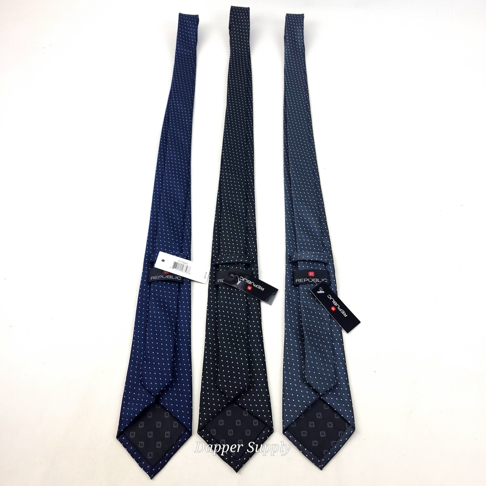 (Lot of 3) Republic Blue Black Grry Polka Dot Textured Dress Ties New Hand Made