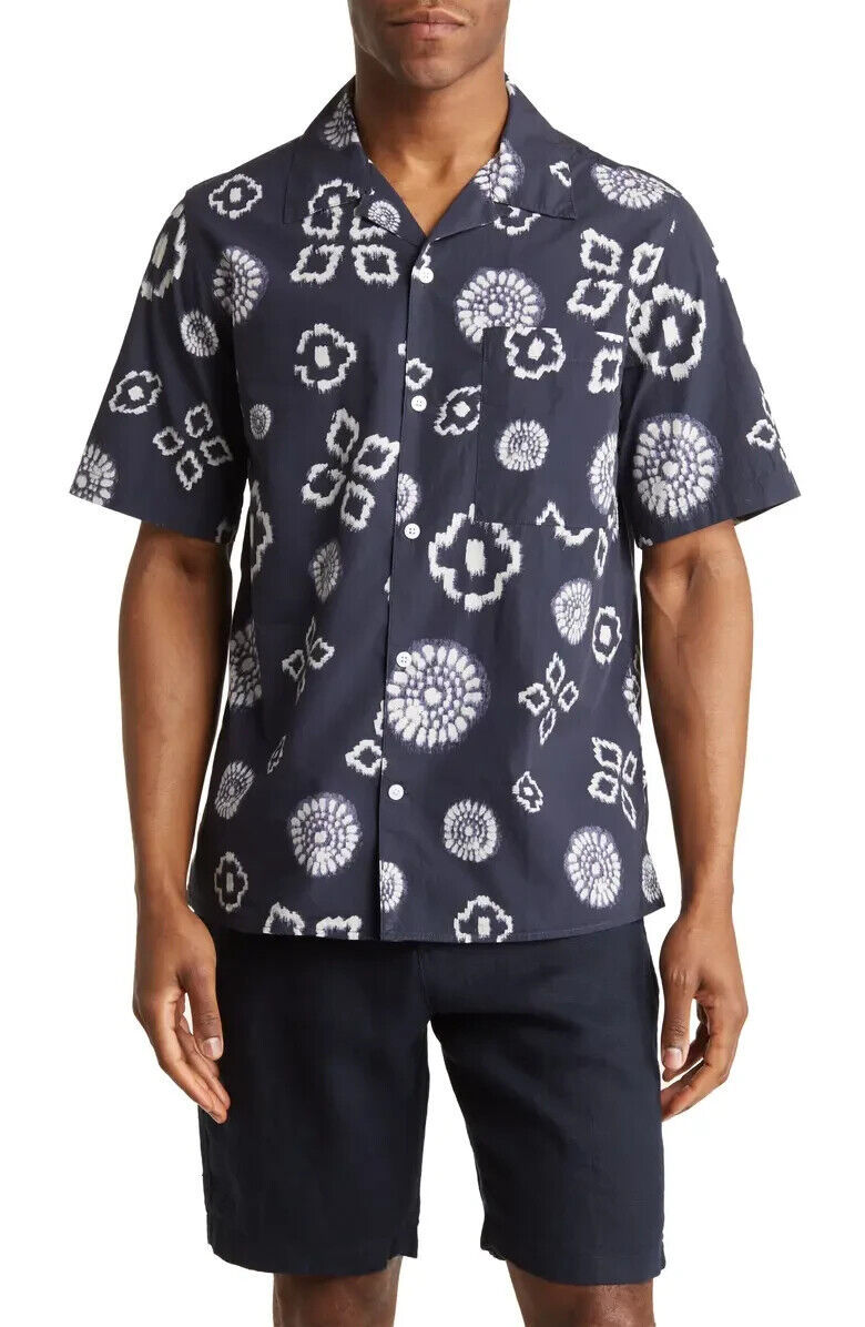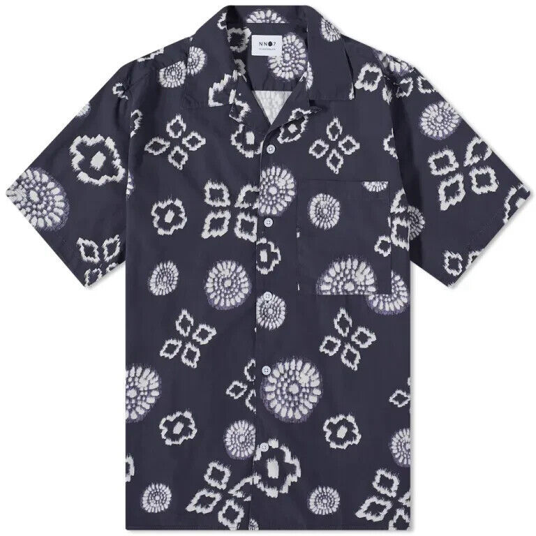 NN07 Men's All Cotton Julio Short Sleeve Geo Print Shirt Navy Print-Size Small