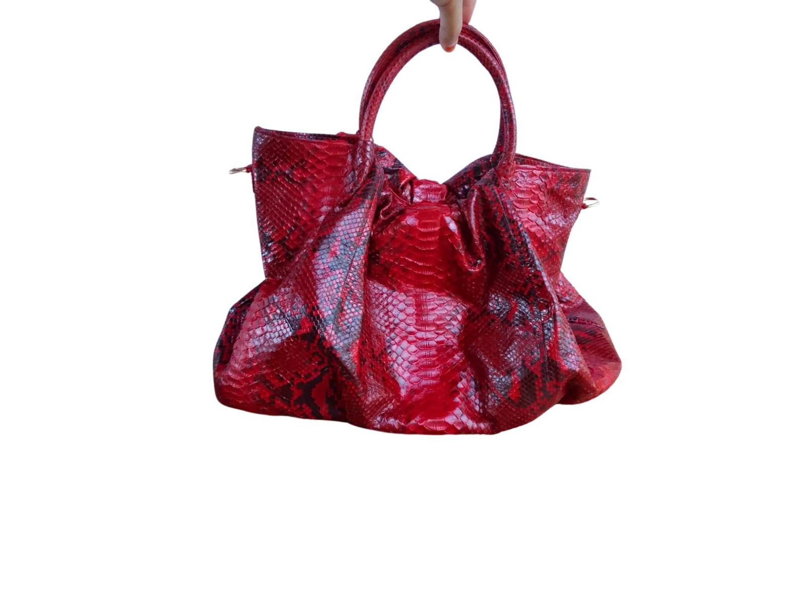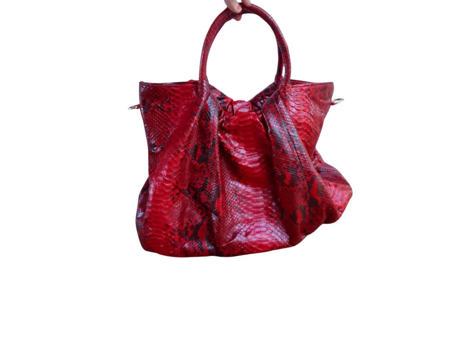 Add a bold statement to your outfit with our Red Snakeskin Hobo Bag. Crafted from genuine python snakeskin leather, this bag exudes luxury and sophistication. Elevate your style and make a statement with our stunning hobo bag.