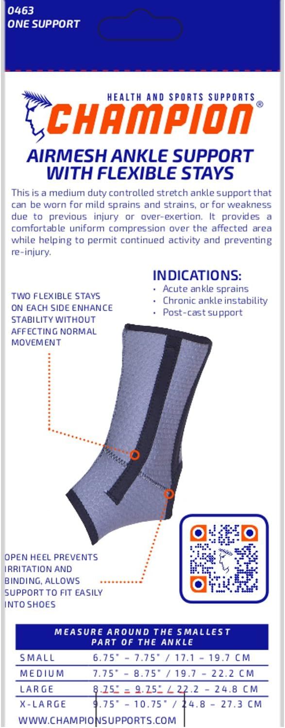 Title : Champion Ankle Brace, Open Heel, Flexible Support Stays, Airmesh Fabric, Grey, X-Large