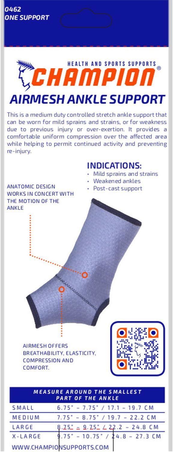 Title : Champion Ankle Brace, Open Heel, Lightweight Support, Airmesh Fabric, Grey, X-Large