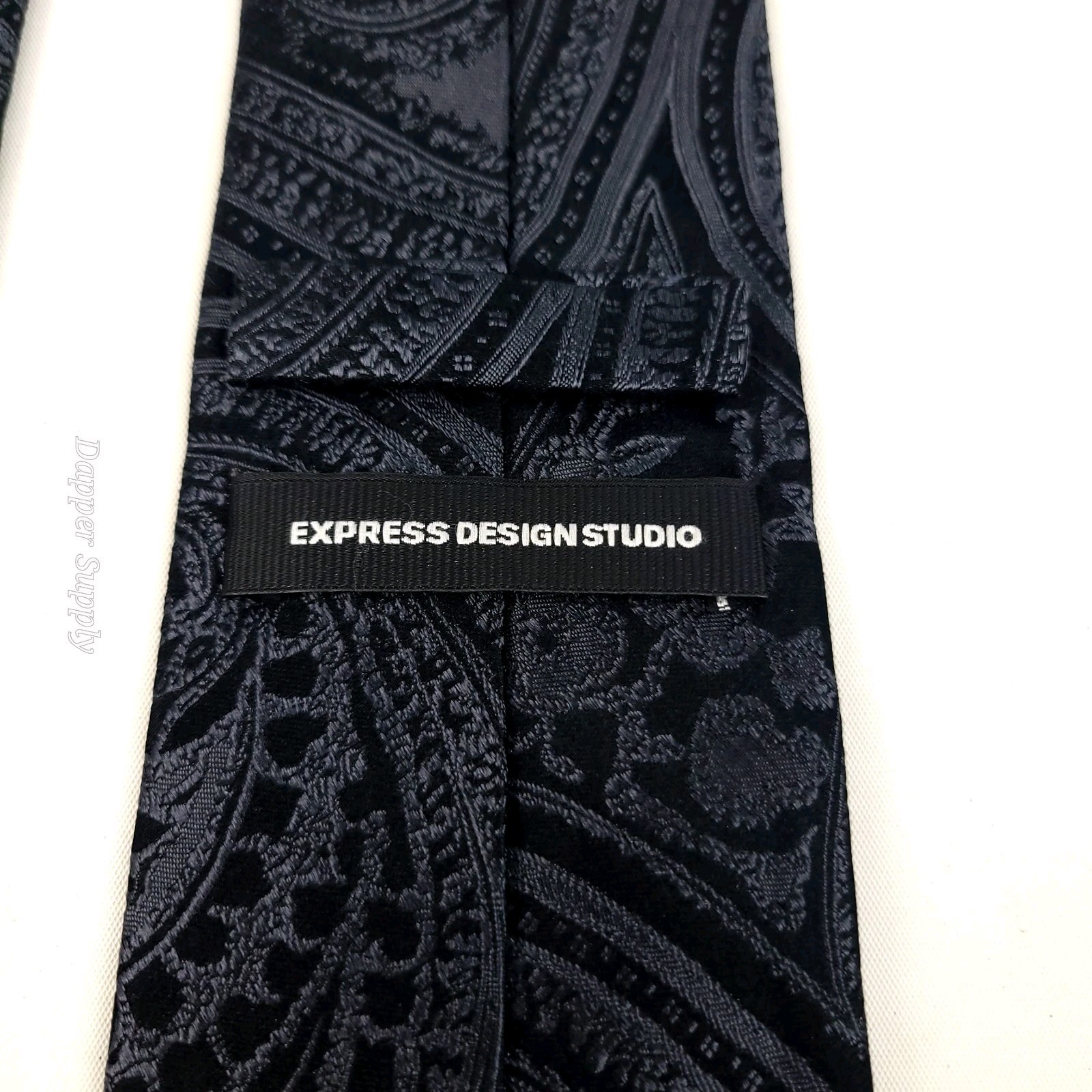 Express Design Studio Necktie Black Grey Paisley Silk Tie