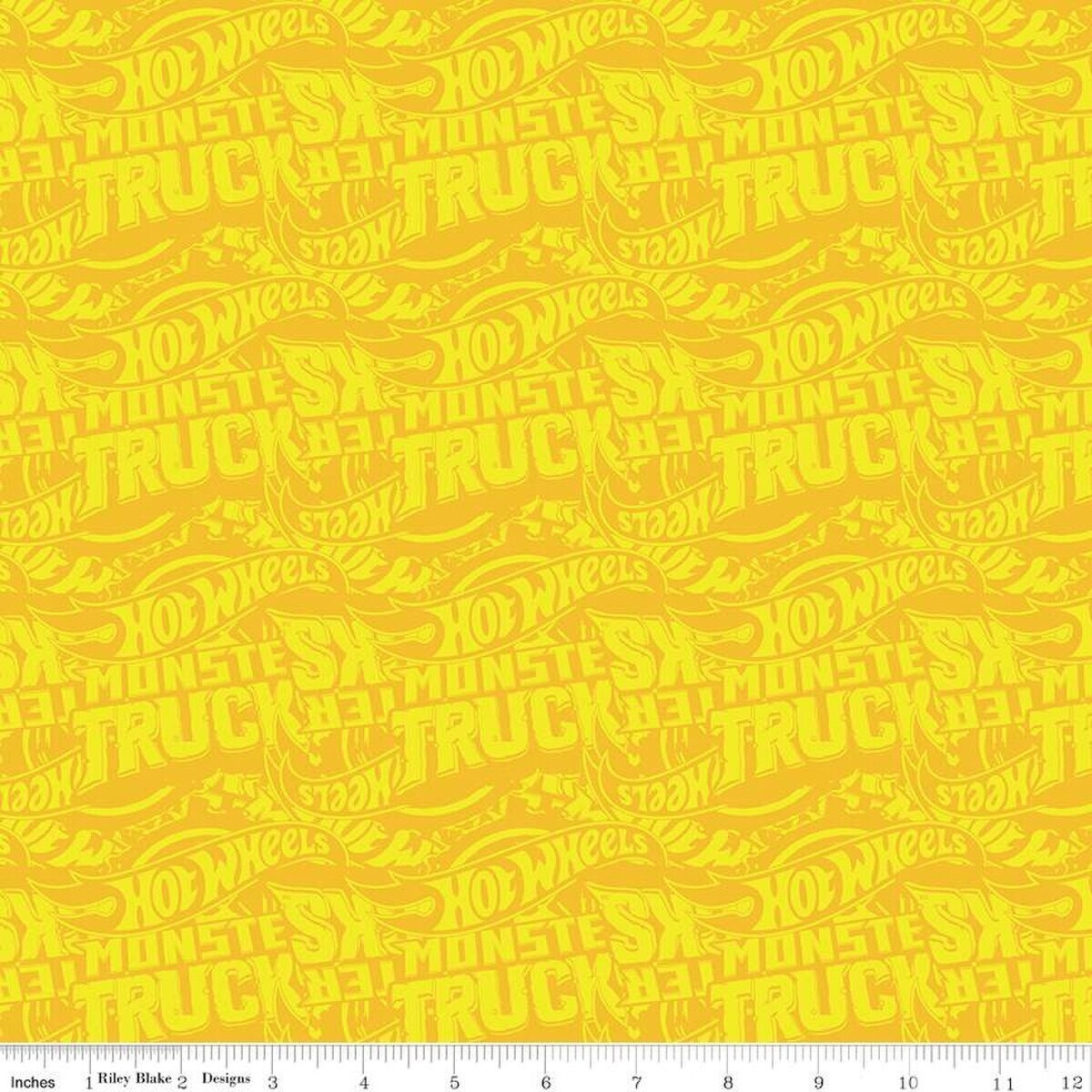Cotton Hot Wheels Monster Trucks Words Yellow Fabric Print by Yard D601.02