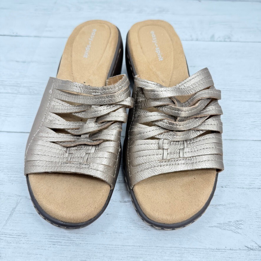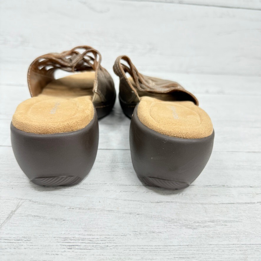 Easy Spirit Daisy Sandals 7W Slip On Leather Bronze Metallic Wedge Clog