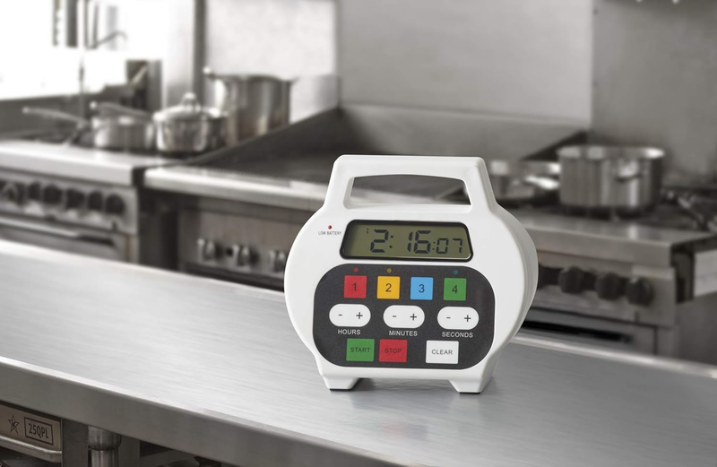 MULTI-TASKING COUNTDOWN TIMER FOR COMMERCIAL HOME KITCHENS ? the Chef Master 4-Channel Digital Timer, designed for precision and efficiency in busy kitchens. This professional-grade countdown timer features four independent timers with memory recall, allowing chefs and cooks to monitor multiple dishes, baking cycles, or food prep stations at once. Ideal for commercial kitchens, restaurants, catering services, food trucks, this digital kitchen timer is perfect for timing everything from baking and roasting to boiling and grilling. Its large, easy-to-read display and intuitive controls make it a must-have for high-volume kitchens where timing is critical.