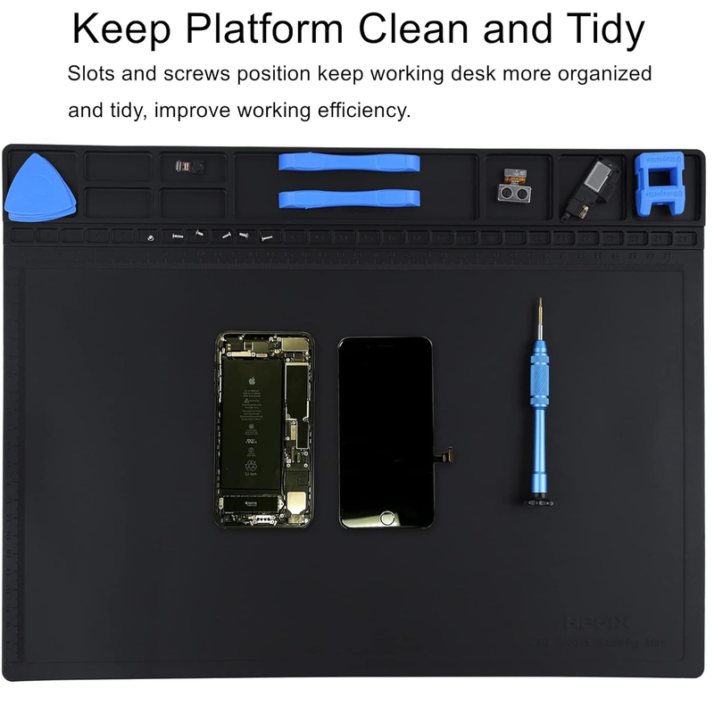 Keep Your Platform Clean and Tidy: The big anti-static mat create a Organized work space for you. There has 37 slots and built-in scale ruler keep your small disassembled components in good classification, easier to distinguish and get, and improve working efficiency.