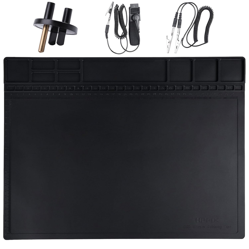 ??Heat Resistant 932F and Big Size ?-The anti-static mat is resistance to high temperature of 932F protect your desk from burning and ruining. Compared with rubber materials mat, it has better heat resistance at high temperature. Meanwhile, the Mat has big size 15.9?? x 12??provide bigger space to satisfy many projects like for repairing mobile phone, computer circuit board, iPad, camera so on electronics. It?s great for professional repair store, DIY handyman and electronics workshop.