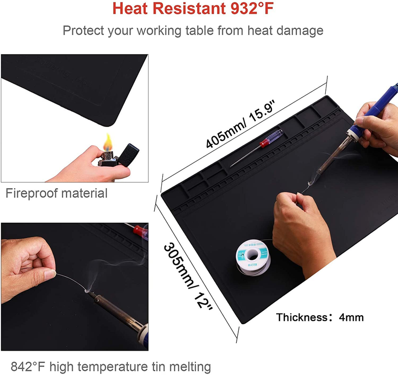 High Temperature Heat Resistant: The mat is high temperature resistance. It can perfectly protect your workbench platform from burning and ruining.