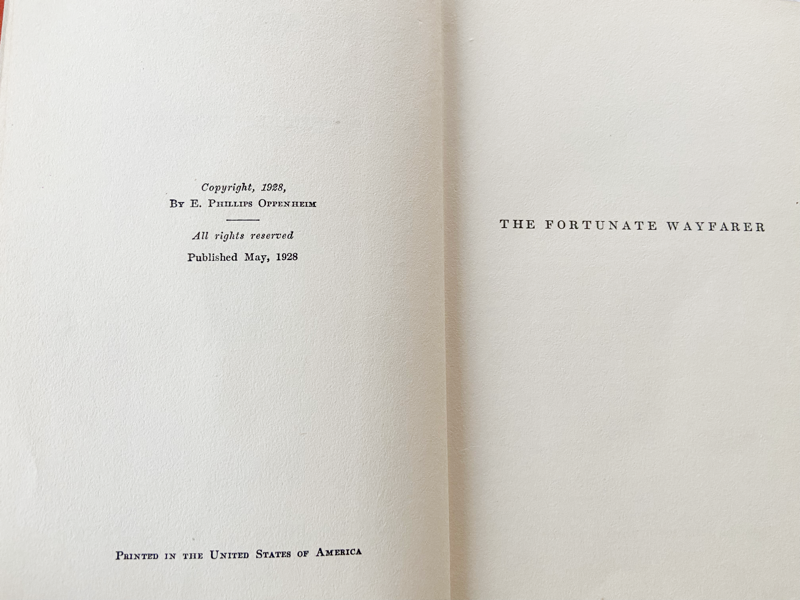 1928 HC The Fortunate Wayfarer by Oppenheim, E. Phillips