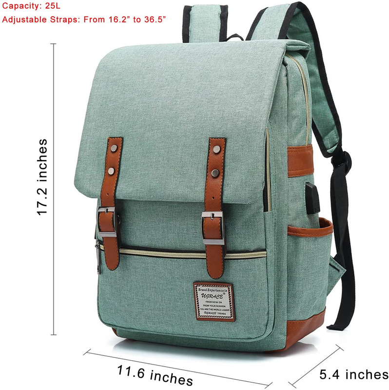 Vintage Laptop Backpack with USB Charging Port, Elegant Water Resistant