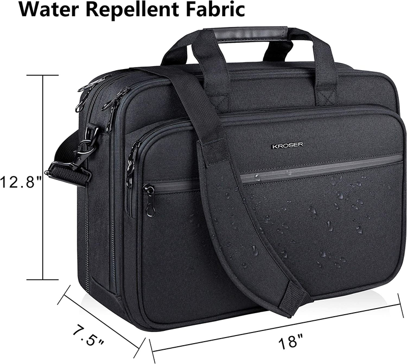 MATERIAL: The laptop briefcase is made of environment-friendly canvas poly fabric which is durable and water-repellent. Dimensions: 18?x12.8?x7.5?/9.5?; Weight: 2.88 LBS.