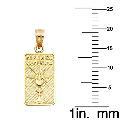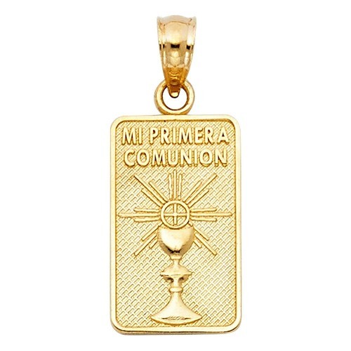 Genuine 14k Yellow Gold 0.62" Rectangular Spanish Mi Primera Comunion Pendant