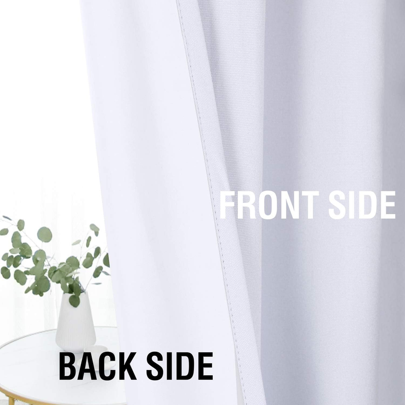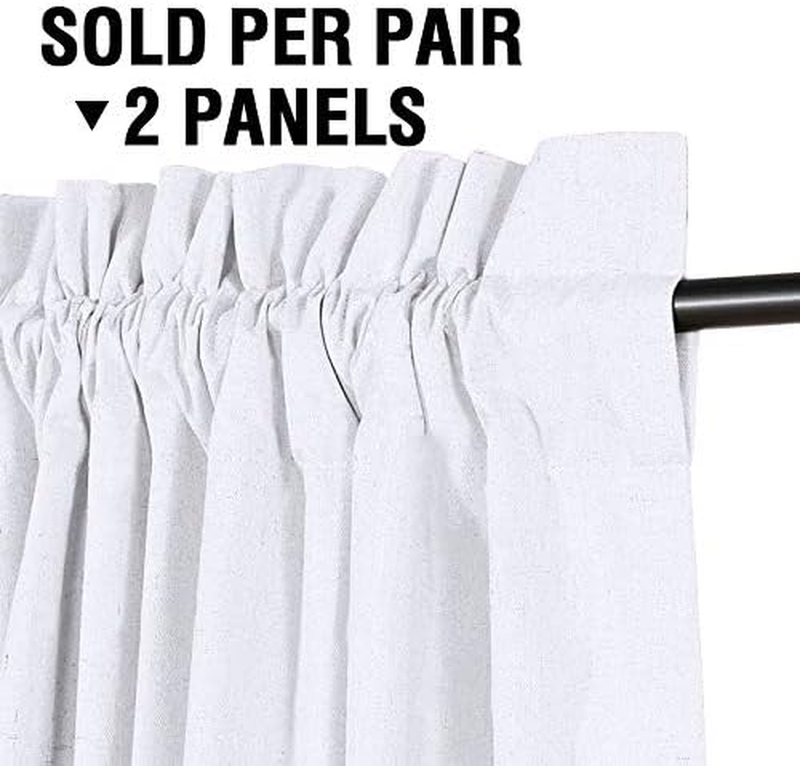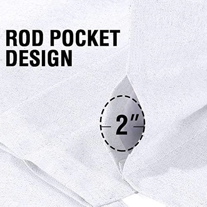 Linen Look 100% Blackout Bright White Curtains 84 Inches Long For