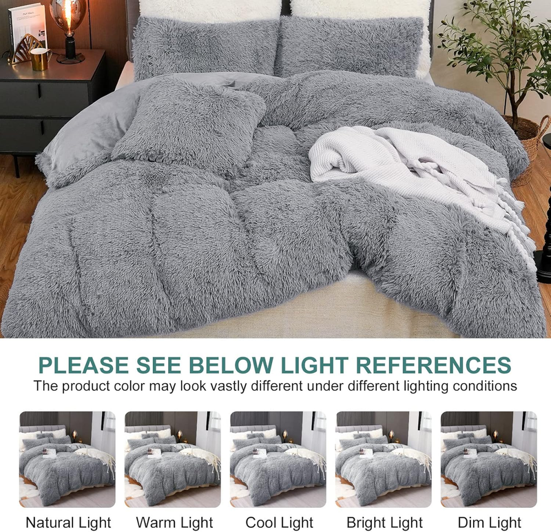 Fluffy Plush Duvet Cover Set Queen Size, Luxury Ultra Soft Velvet Fuzzy Comfort
