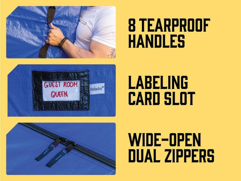 Carry Handles - 8 mighty handles are stitched onto the mattress bag, enabling you to transport your mattress as effortlessly as possible. Gracefully carry your mattress upstairs, slide it through narrow hallways, and maneuver it into tight storage spaces. The bag is also specially designed for one person to drag on the floor so you can easily handle your mattress on your own.