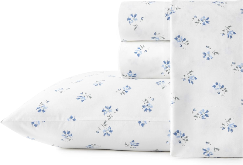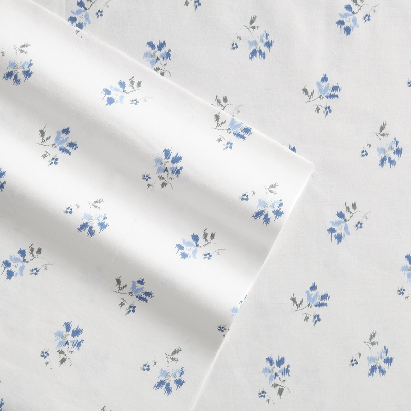 King Sheets, Cotton Percale Bedding Set, Crisp & Cool Home Decor (Blue Sketchy