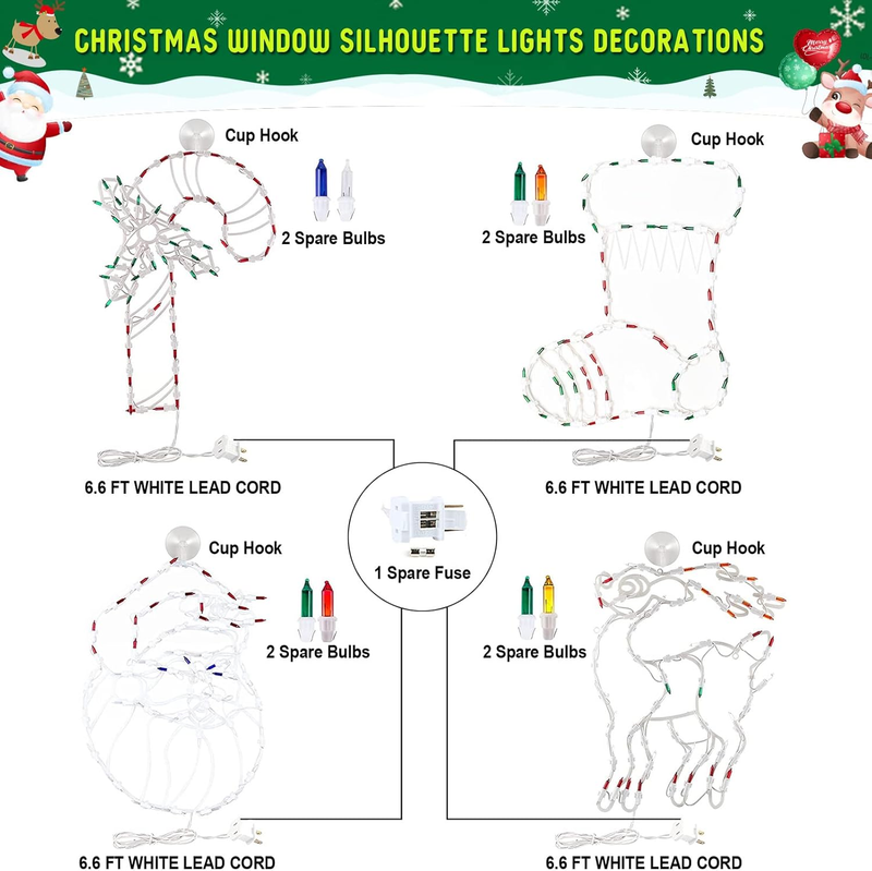 Don?t worry, Yioneshop's unique 4 pack of Christmas Tree, Wreath, Trumpeting Angel, and Snowman window led lights are the unique one designed for you!
