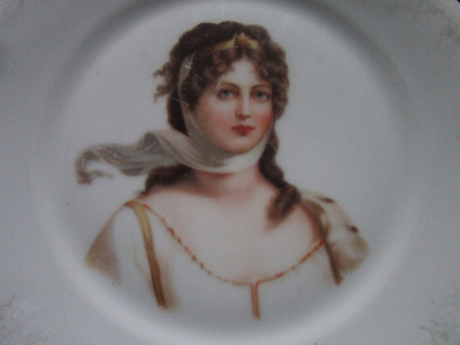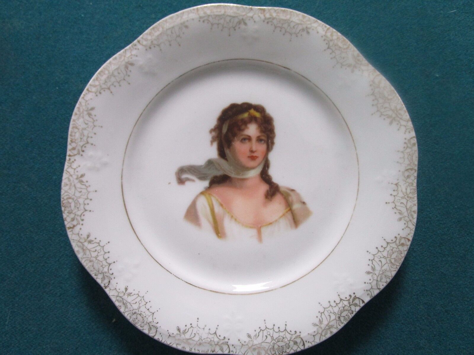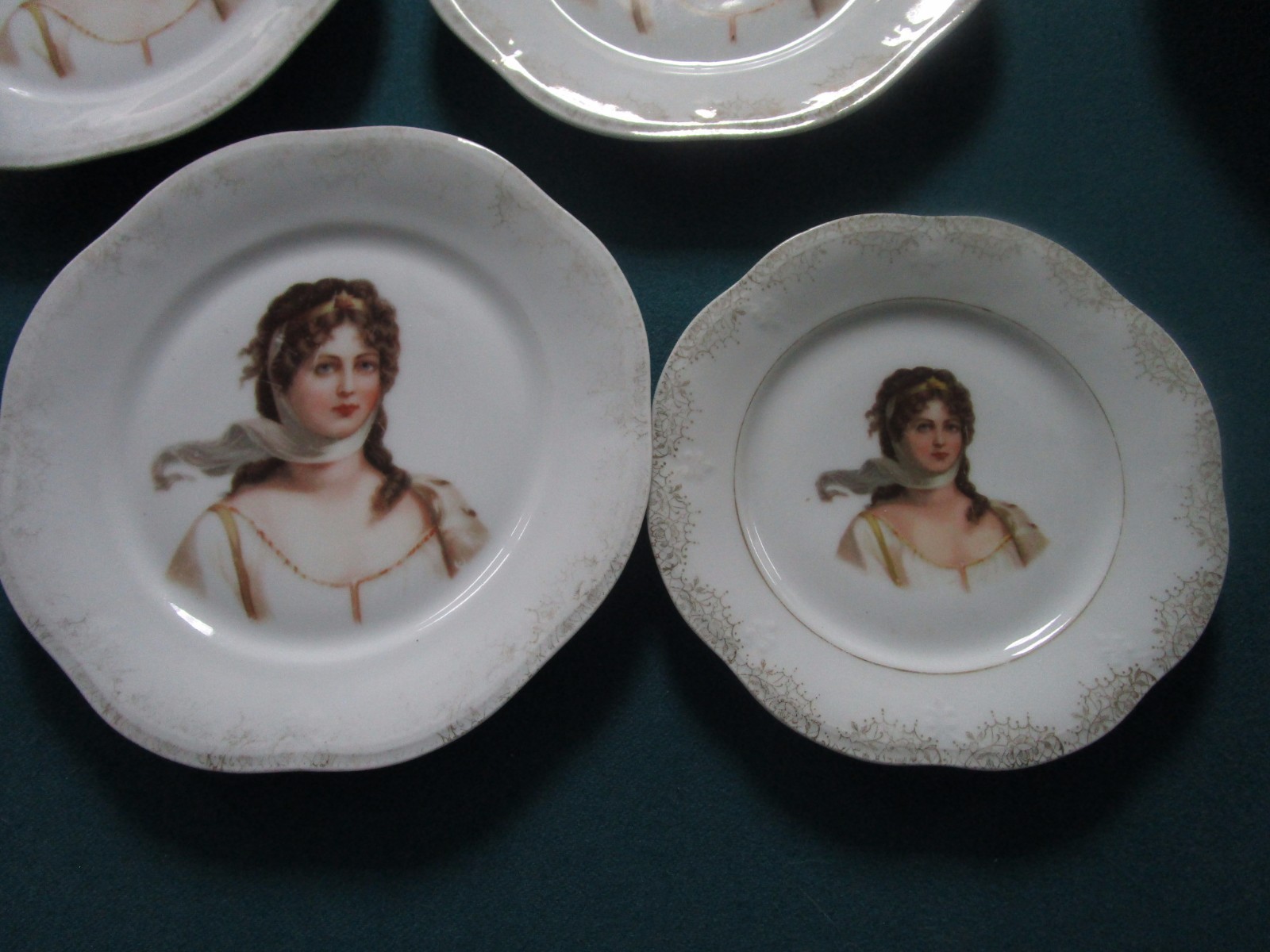 ZEH SCHERZER CO MIGNON GERMANY Vintage 4 Portrait Plates MARIA LOUISA SALAD ARE 7 1/2" AND SMALL 6" VERY GOOD CONDITION, SOME LIGHT SURFACE SCRATHES COMMENSURATE WITH AGE