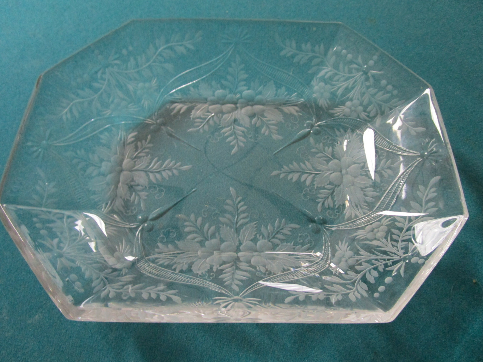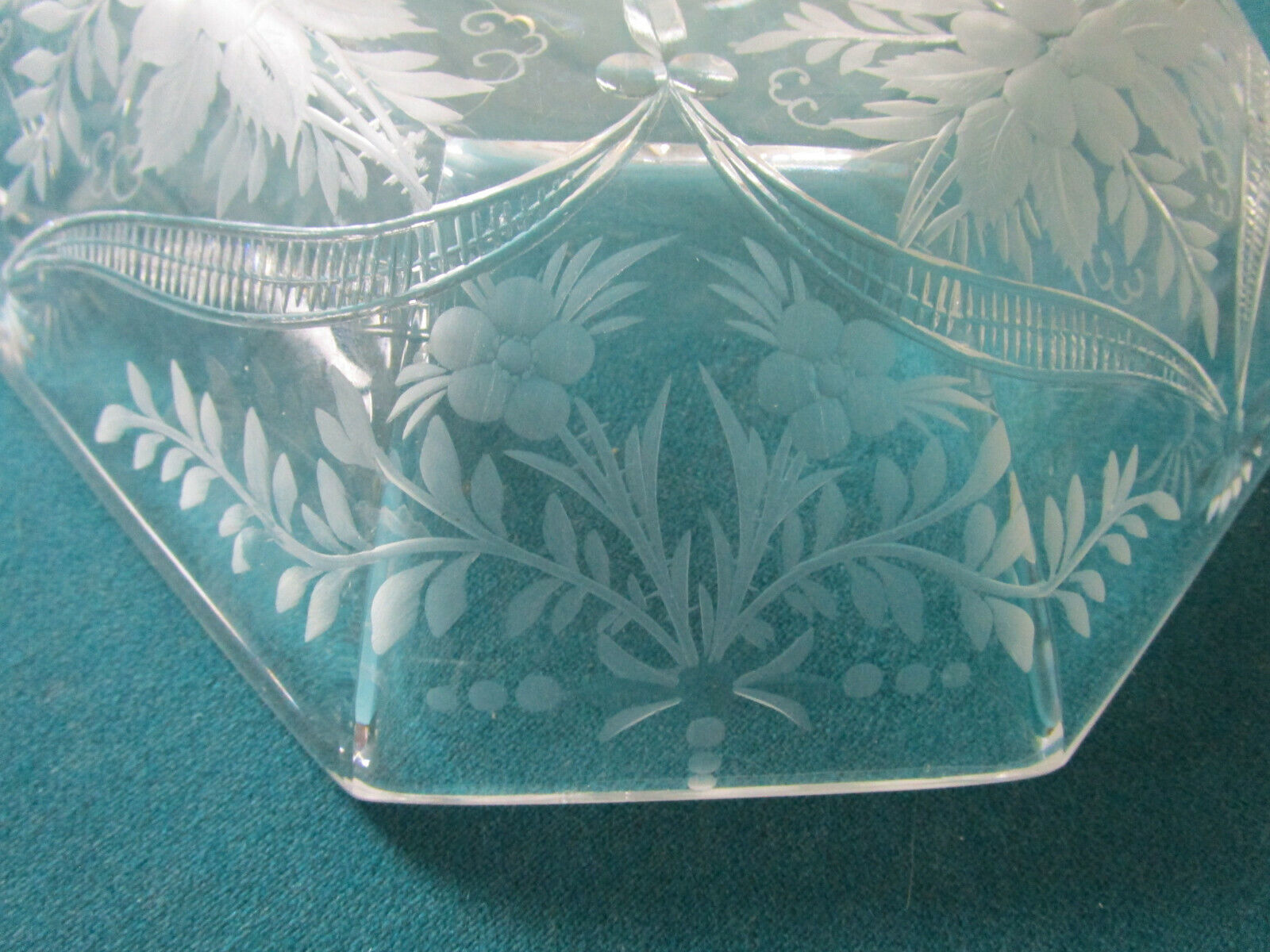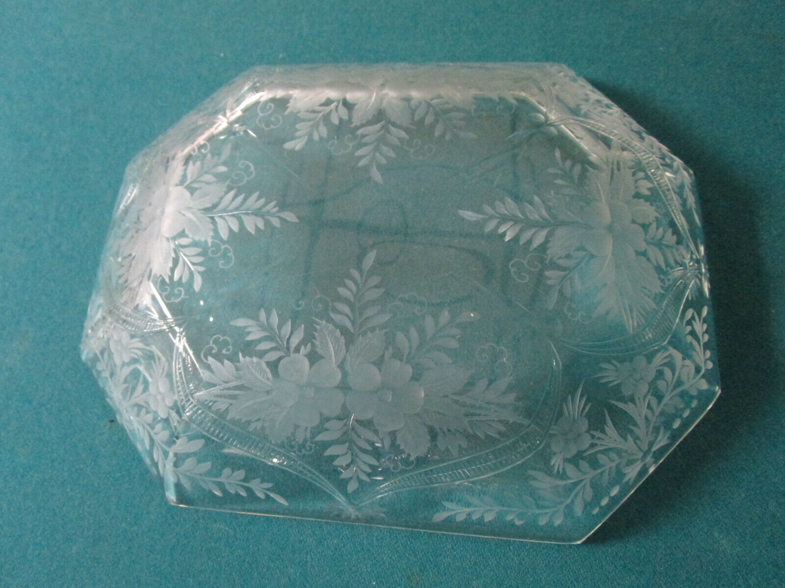 ANTIQUE VICTORIAN ETCHED SQUARE BOWL FINE RARE