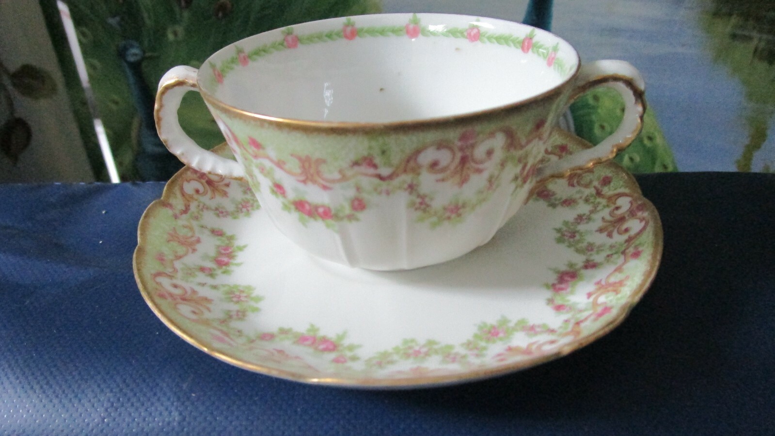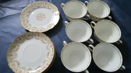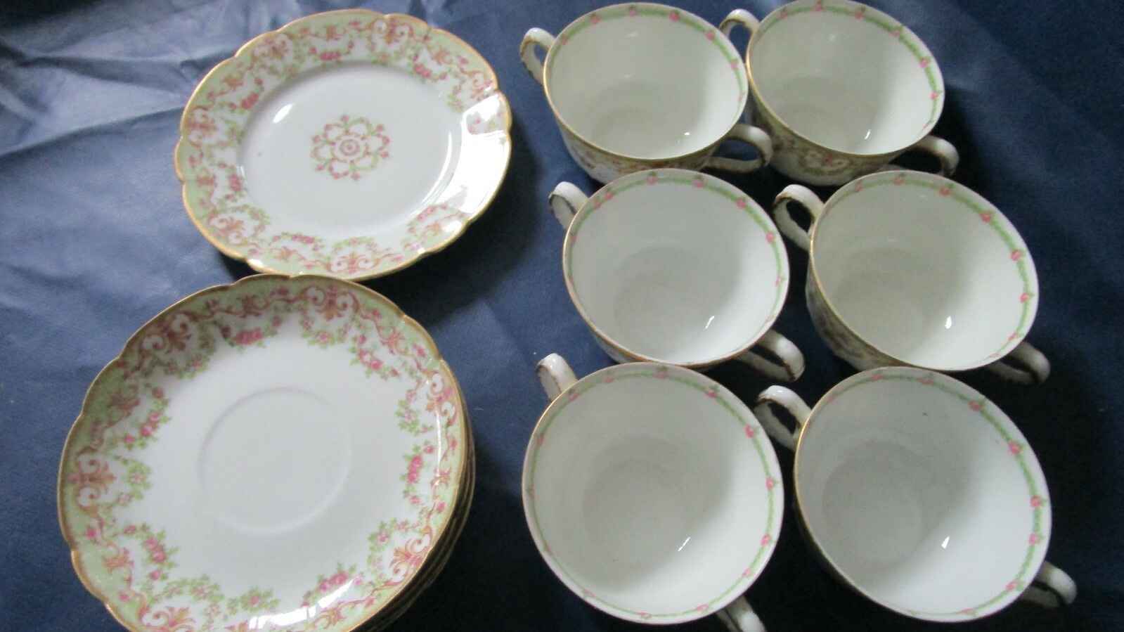 ANTIQUE LA PORCELAIN LIMOUSINE FRANCE LP SOUP BUILLON CUPS SAUCERS 13 PCS