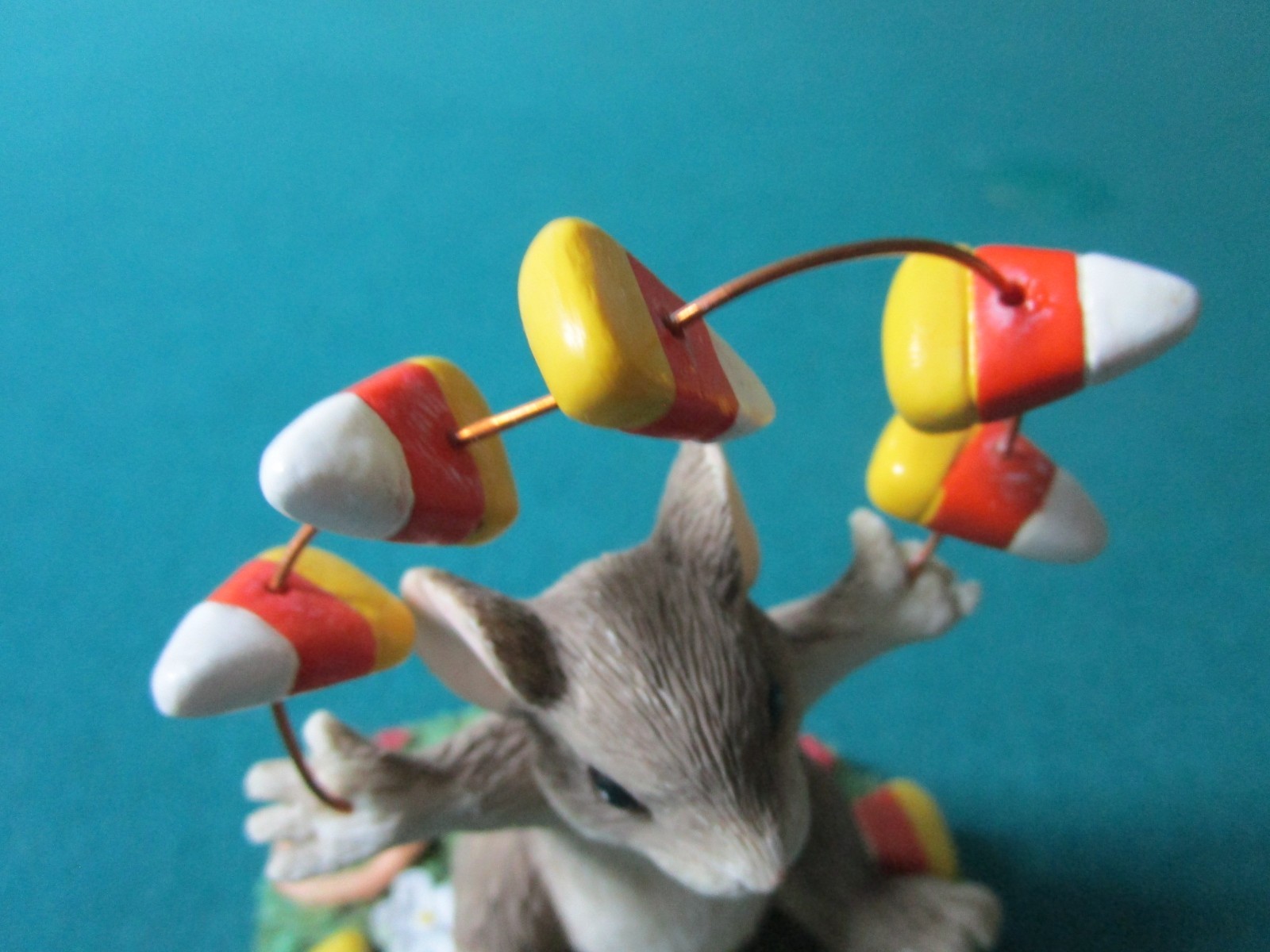 CHARMING TAILS BY FITZ & FLOYD FIGURINE "LOOK, NO HANDS!" THANKSGIVING