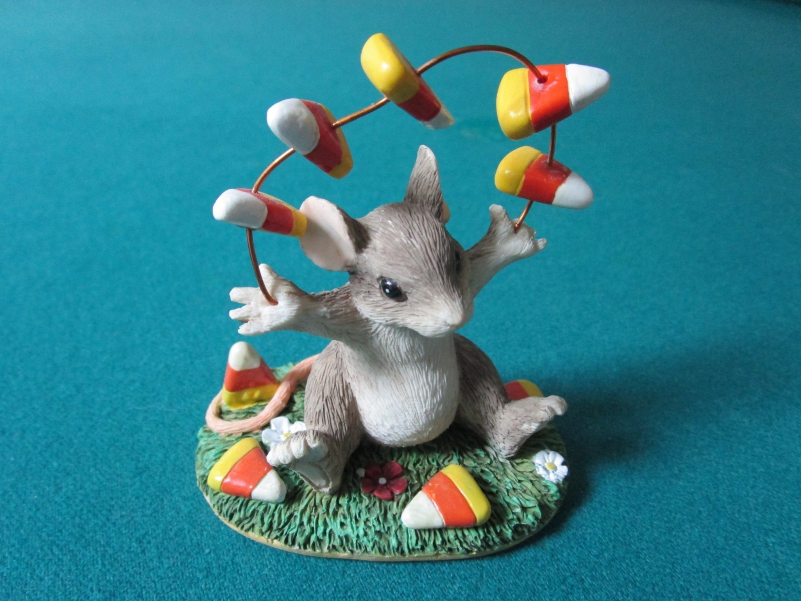 CHARMING TAILS BY FITZ FLOYD FIGURINE "LOOK, NO HANDS!" THANKSGIVING 3 1/2X 3" [CHT12] VERY GOOD CONDITION, SOME LIGHT SURFACE SCRATCHES COMMENSURATE WITH AGE