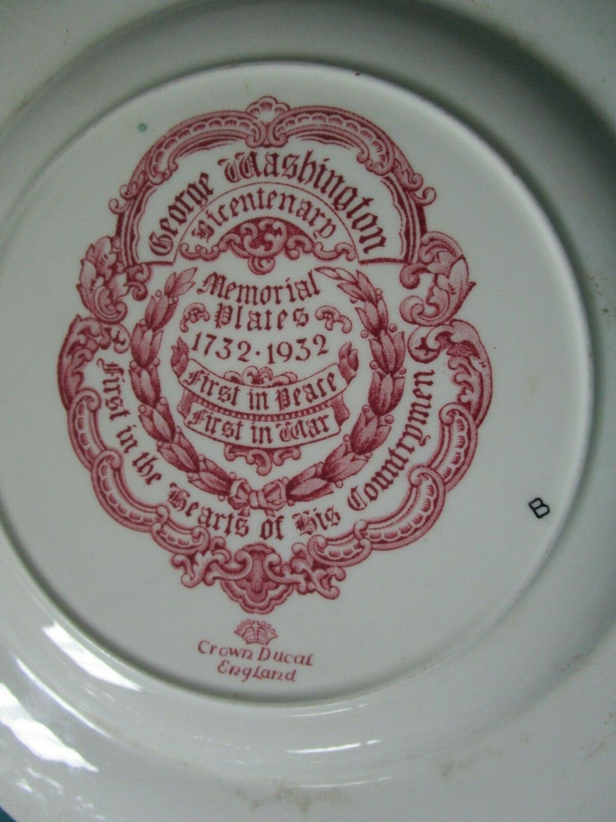 HISTORICAL PLATES 1932 RED TRANSFER GEORGE WASHINGTON CROWN DUCAL ENGLAND PICK1