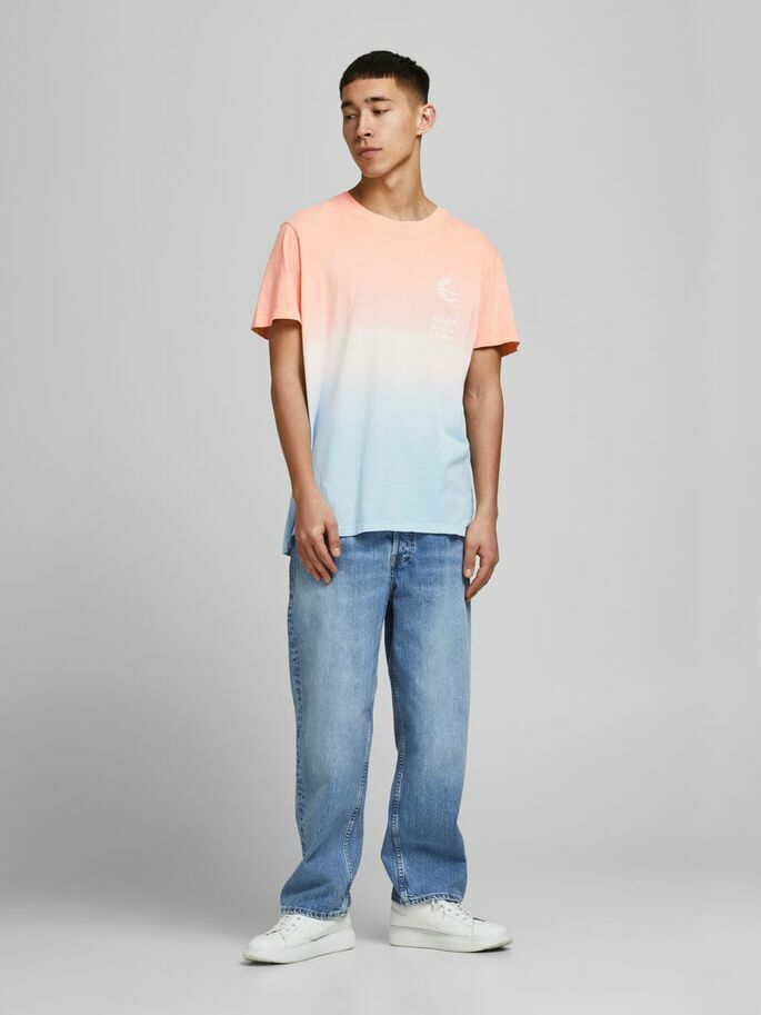Jack & Jones Men's Joralooha Oversized Fit Dip Dye Crewneck Tee Coral-Large