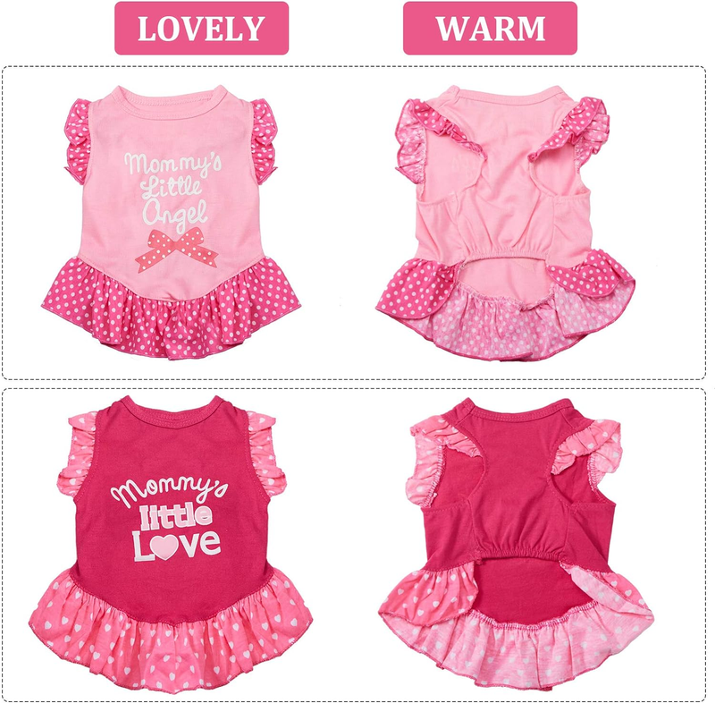 2 Pieces Dog Dresses for Small Dogs Cute Girl Female Dog Dress Mommy Puppy Shir
