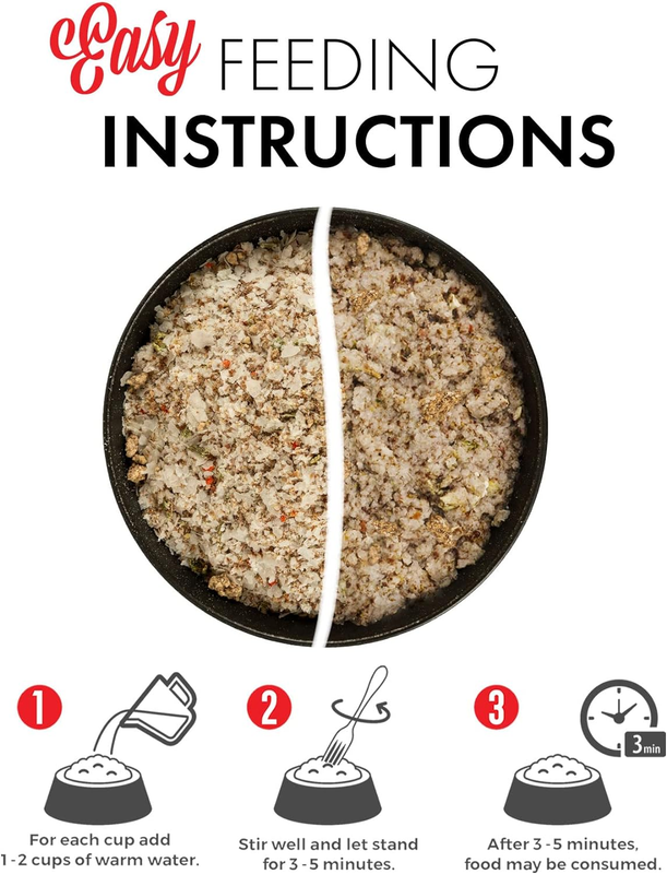 Easy to prepare freeze-dried recipe: just add warm water, mix and |