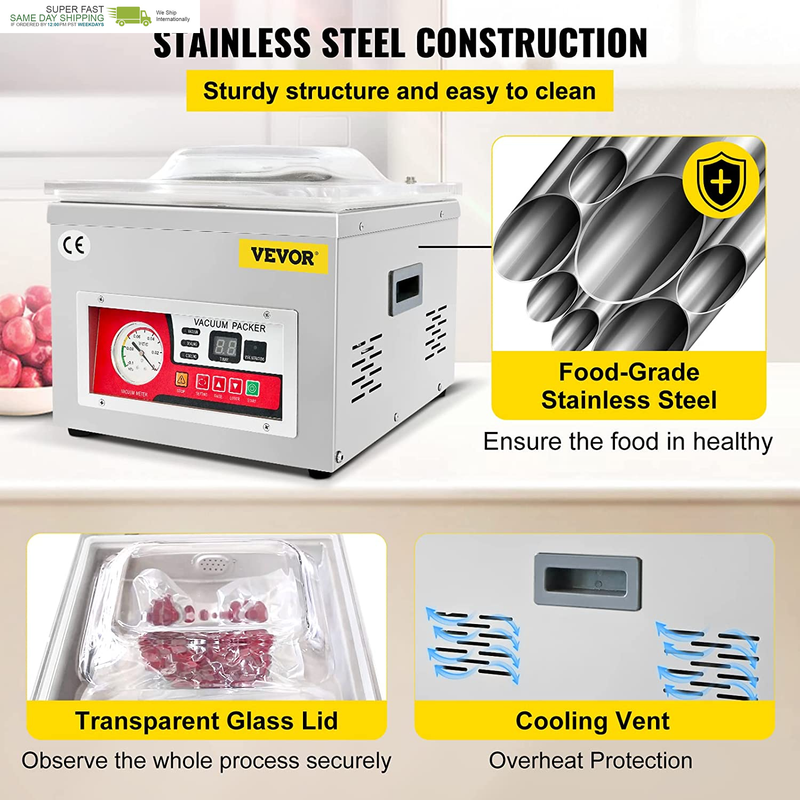 This chamber vacuum sealer is constructed of stainless steel, which is food-grade stainless and more durable. Moreover, this material is fastness and waterproof, easy to clean, you can use it for a long time.