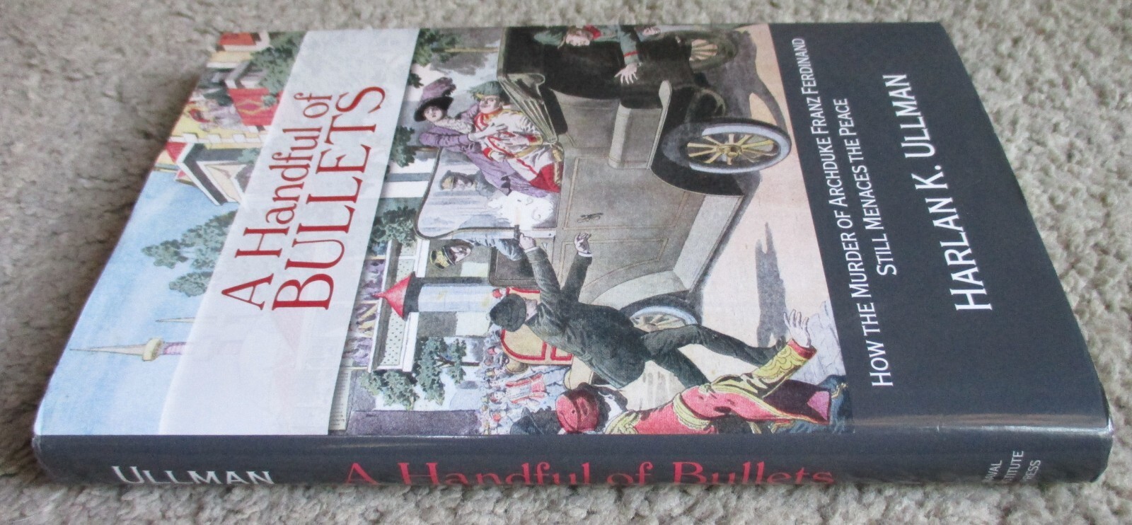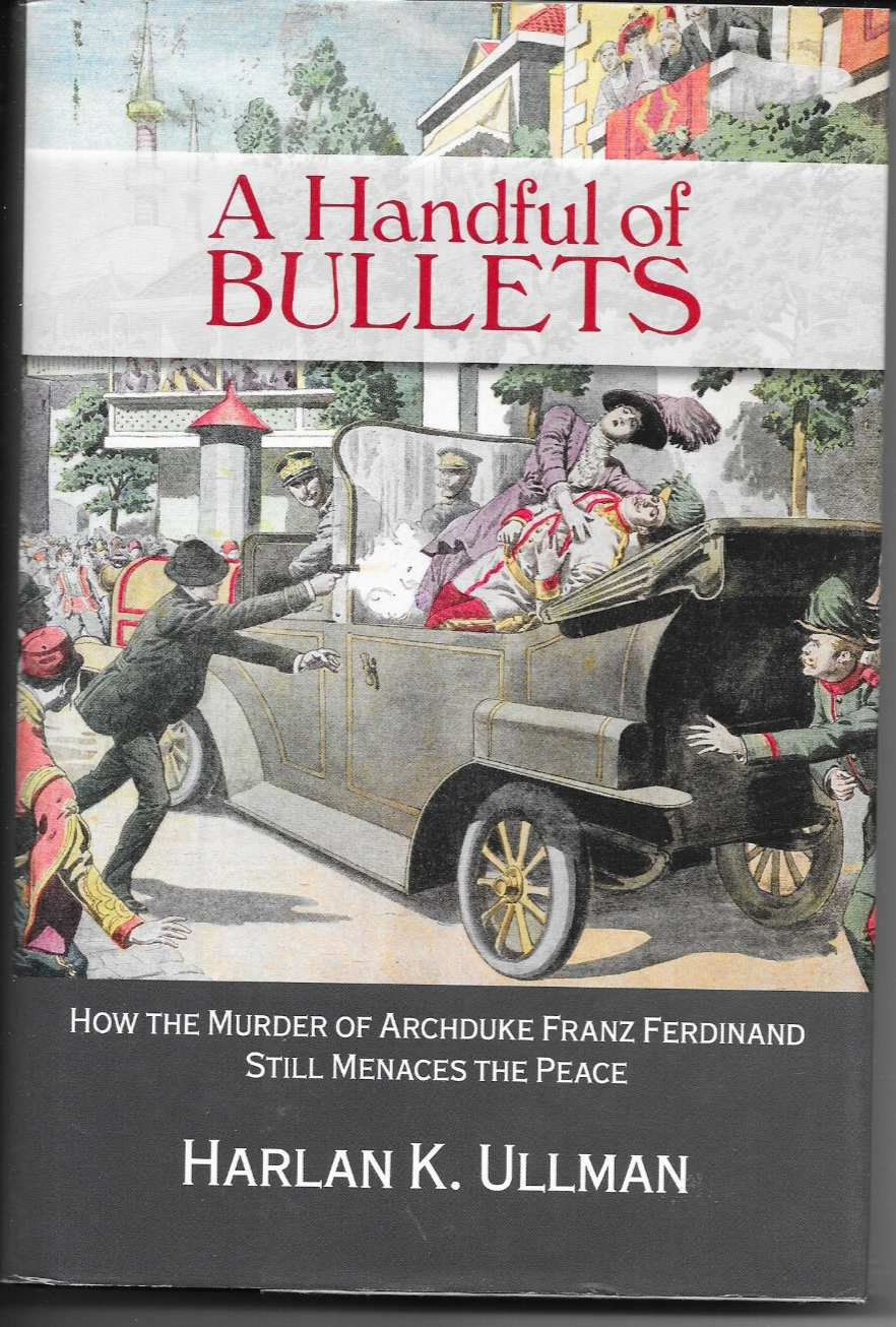 6.25" x 9.25", 236 page hardcover with dustjacket titled A HANDFUL OF BULLETS: HOW THE MURDER OF ARCHDUKE FRANZ FERDINAND STILKL MENACES THE PEACE by Harlan K. Ullman/ Naval Institute Press, ISBN # 978-1-61251-799-5, First Printing, Copyright 2014/ The Great War or the "War to end all Wars" as promised by President Woodrow Wilson was neither great nor ultimately conclusive. Precipitated by the assassination of the Austro-Hungarian Archduke Franz Ferdinand and his wife in the streets of Sarajevo on June 28th, 1914, World War I demolished the order established by the Concert of Vienna, an order that had maintained the peace in Europe for almost a century. The ensuing carnage laid the foundations for World War II and the Cold War that followed.