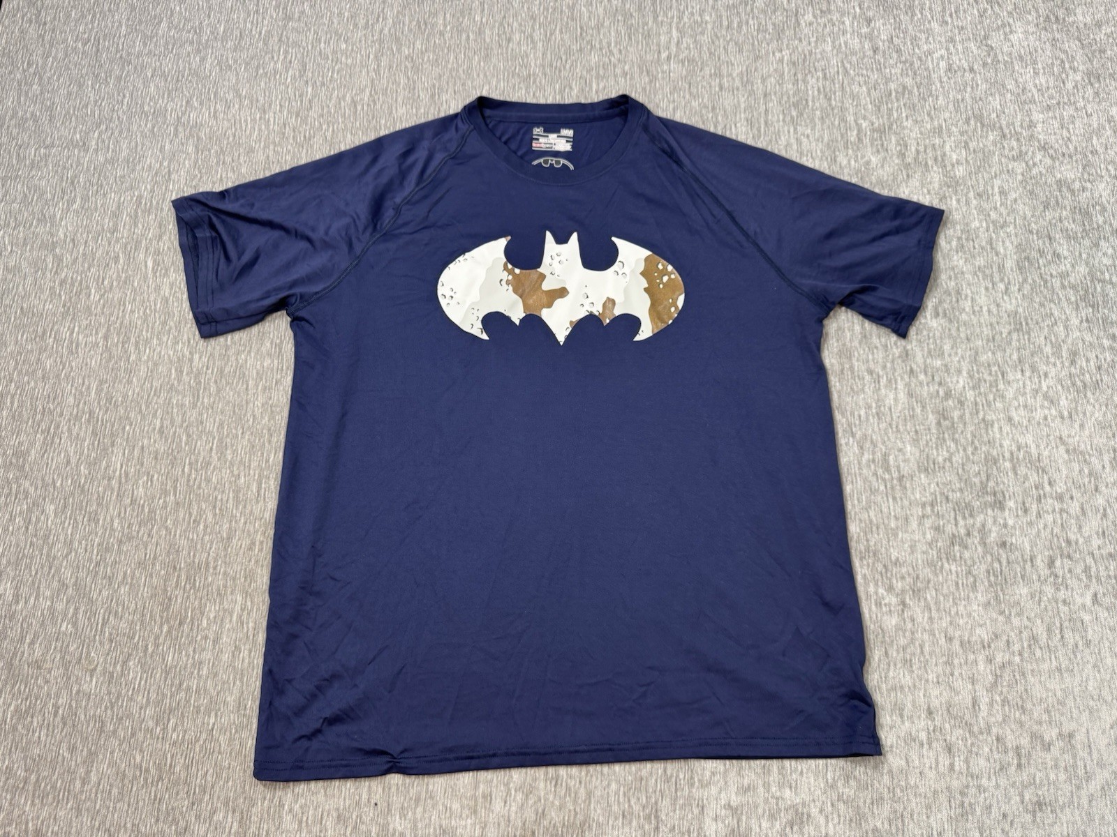 Under Armour Batman Shirt Men Large Navy Loose Alter Ego Camo HeatGear Military