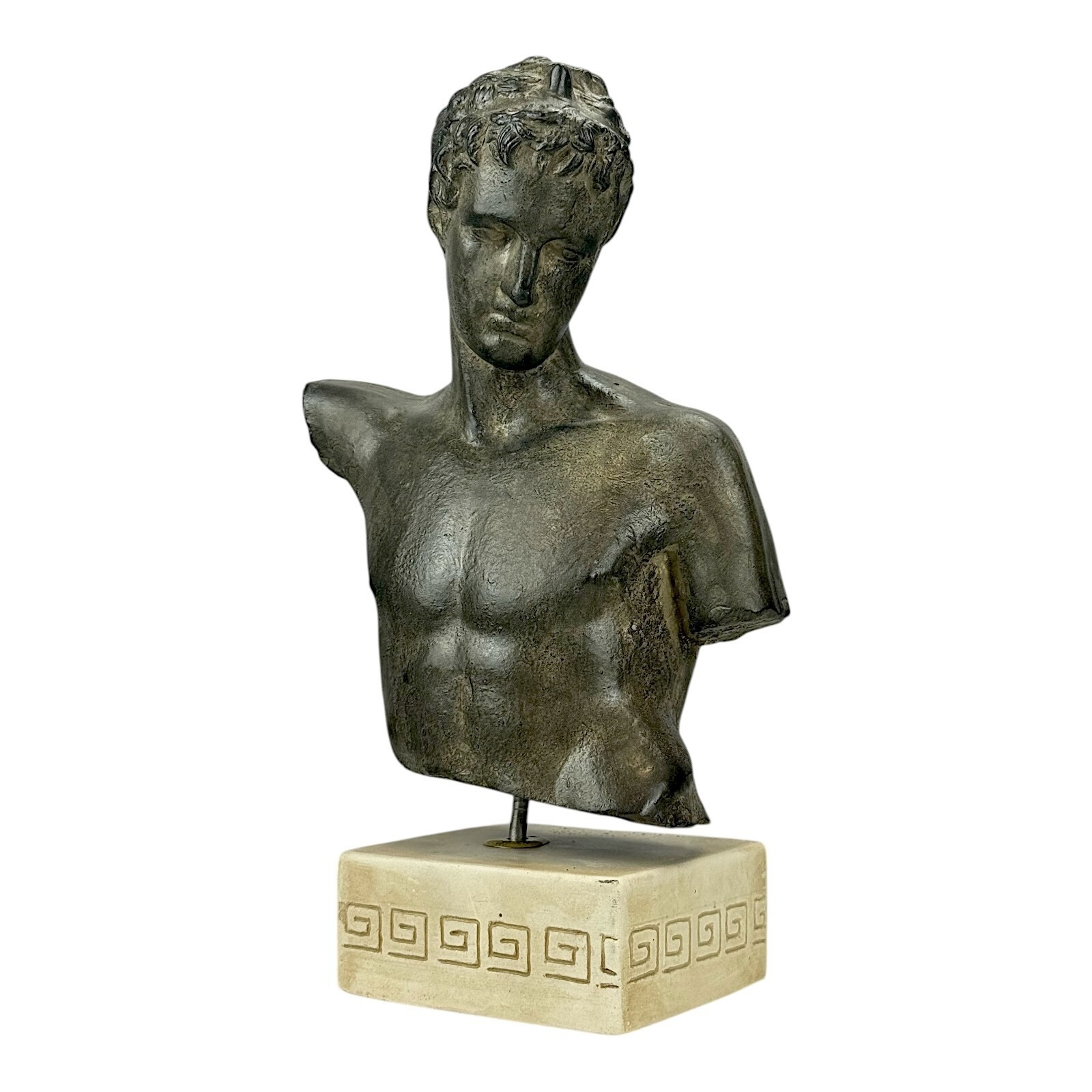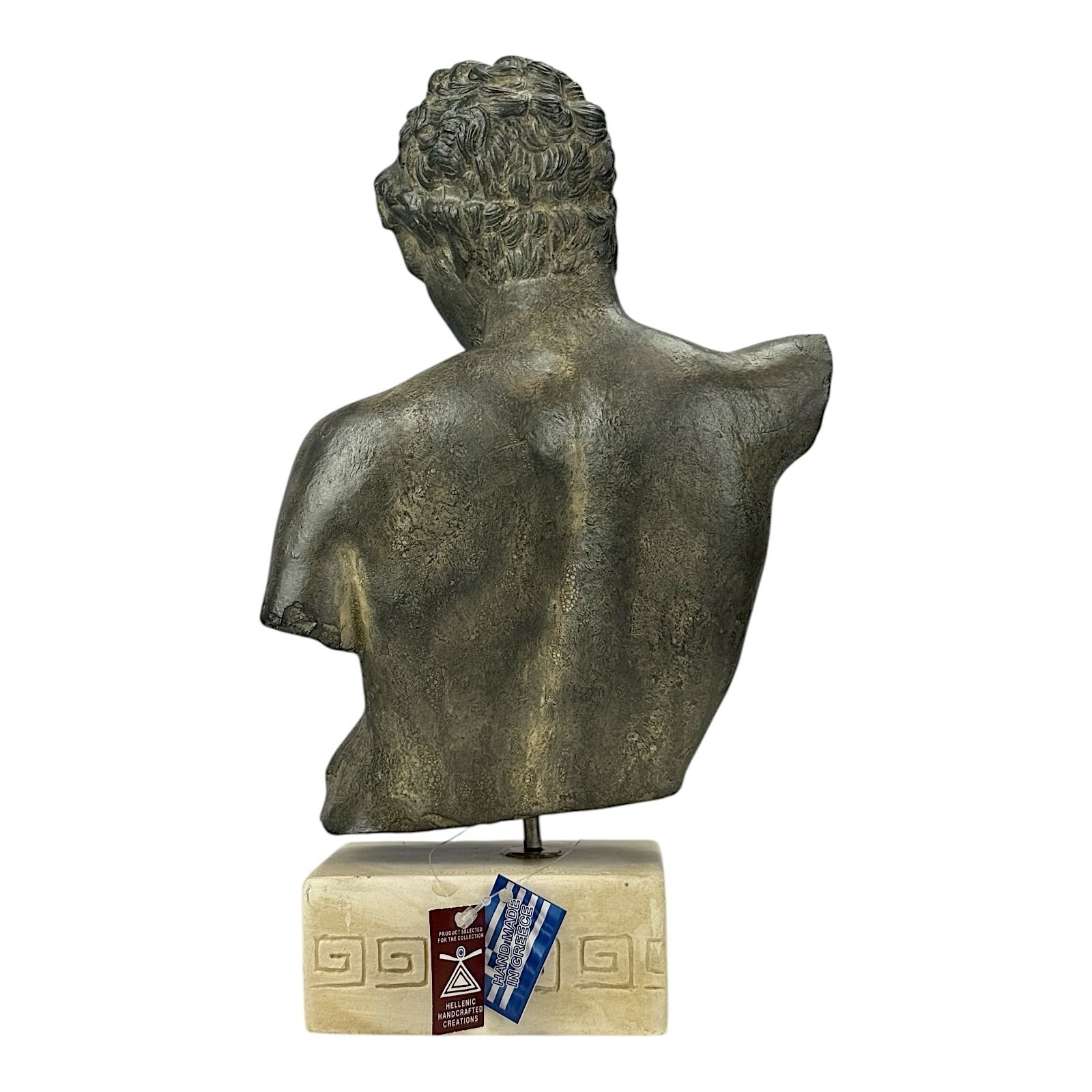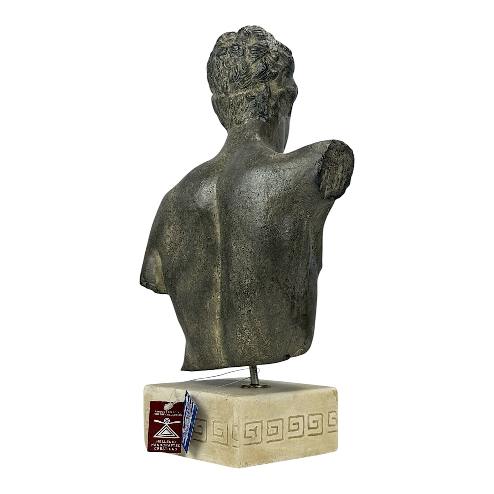 Se cree que el joven representa a un participante adolescente en la carrera de maraton durante los Juegos Panatenaicos. Esta copia detallada de yeso duro trae el espíritu de la antigüedad clasica a tu coleccion.