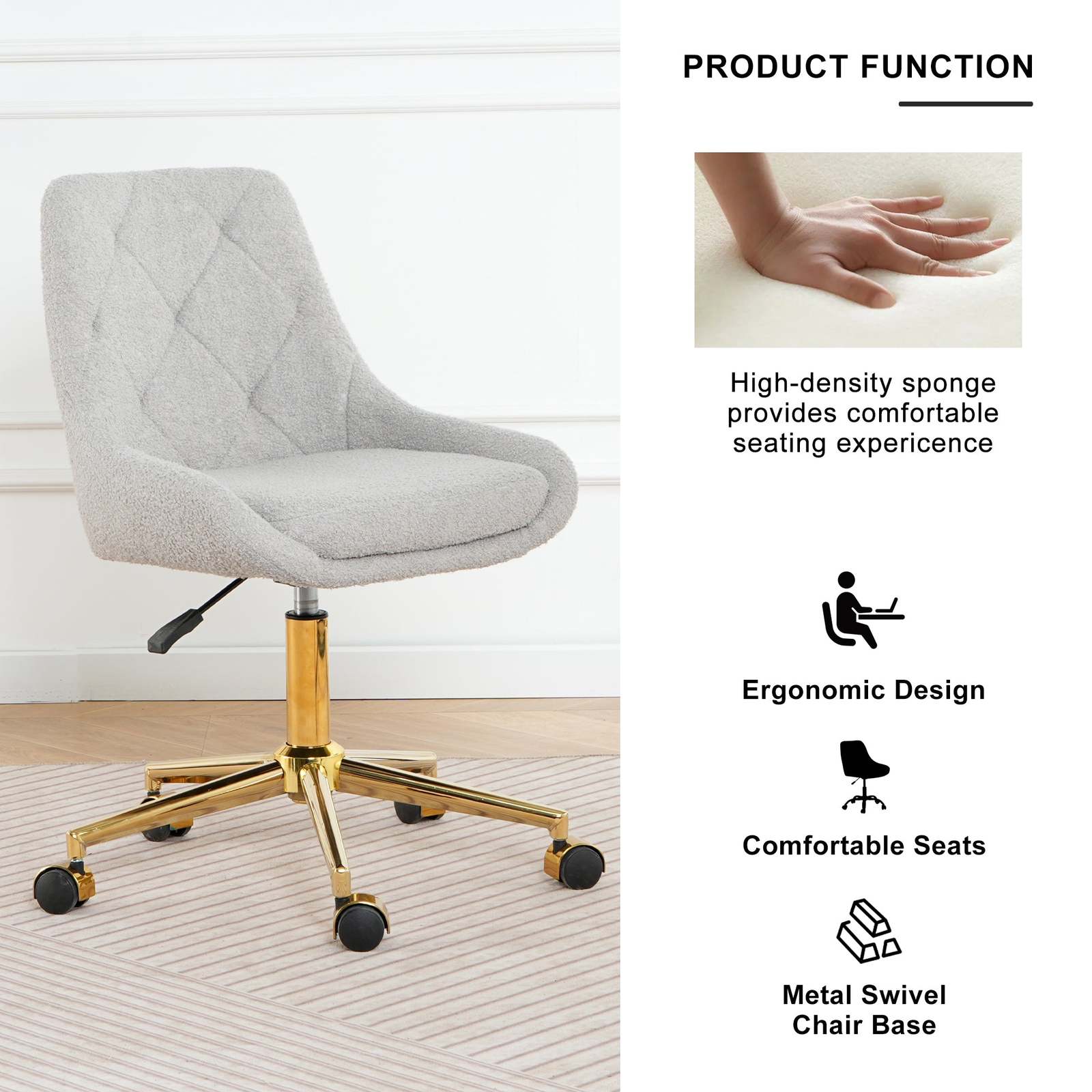 Modern teddy fabric office chair. Every part of these chairs is carefully crafted by our craftsmen