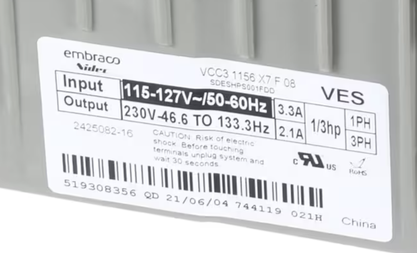 Voltage Output: Up to 230V to compressor