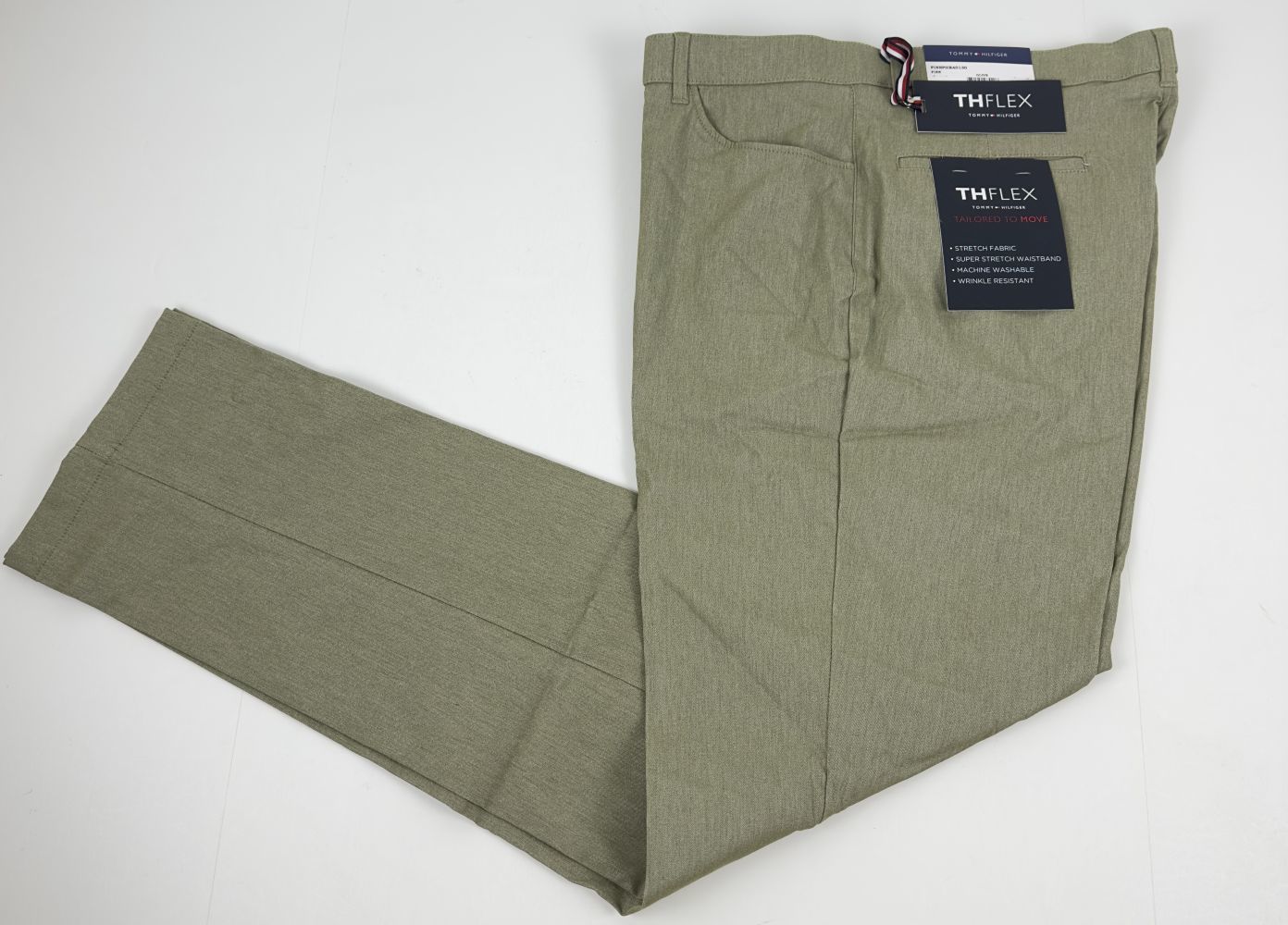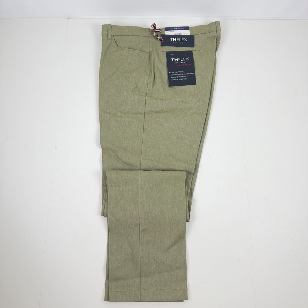 Tommy Hilfiger Twill Pants Men's 38x32 Olive Modern-Fit Stretch Fabric Waistband