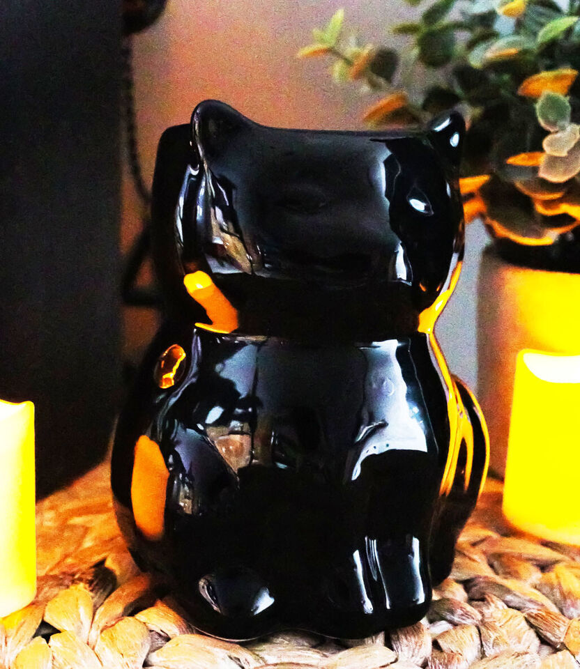 Ebros Wicca Witching Hour Feline Black Cat Kitten Essential Oil Warmer Candle Holder