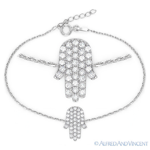 Hand of Fatima Chain Bracelet with CZ Crystals in .925 Sterling Silver