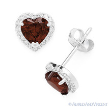 Heart-Shape Simulated Garnet CZ Crystal Halo .925 Sterling Silver Stud Earrings added to cart.
