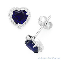 Heart-Shape Simulated Sapphire CZ Crystal Halo 925 Sterling Silver Stud Earrings