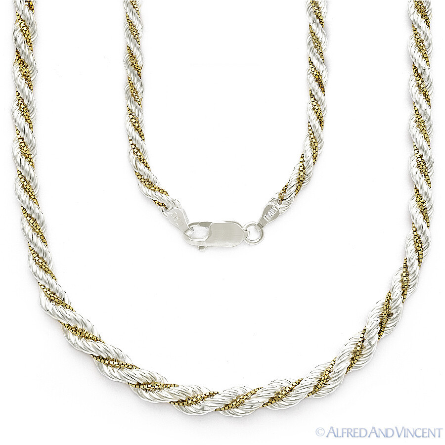 Heavy Rope & Box Link .925 Sterling Silver 14k Gold-Plated Twist-Chain Necklace