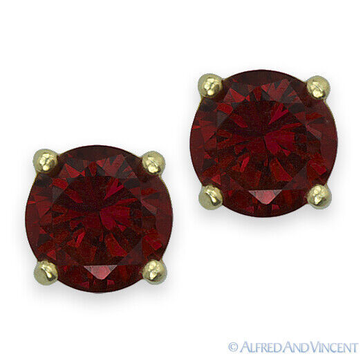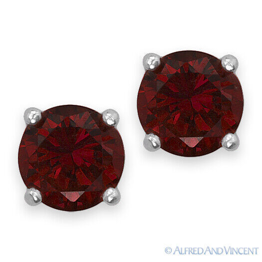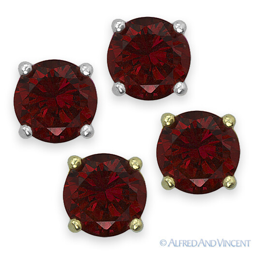 The featured January birthstone earrings showcase round cut deep-red cubic zirconia crystals each set in a 4-prong basket setting crafted in .925 sterling silver . The earrings are then finished with push-backs so they can be worn securely on your ears.