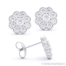 Cubic Zirconia CZ Crystal Flower Stud Earrings in 925 Sterling Silver w/ Rhodium