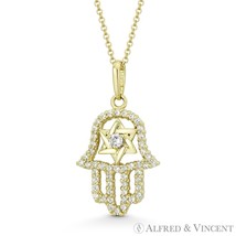 Hamsa Hand & Star of David Jewish Kabbalah CZ Crystal Pendant in 14k Yellow Gold