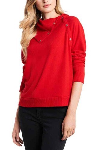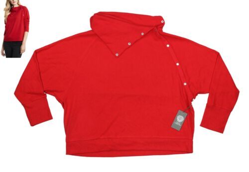 Vince Camuto Womens Red Stretch Ribbed Fold Over Neck with Snaps, Size XL