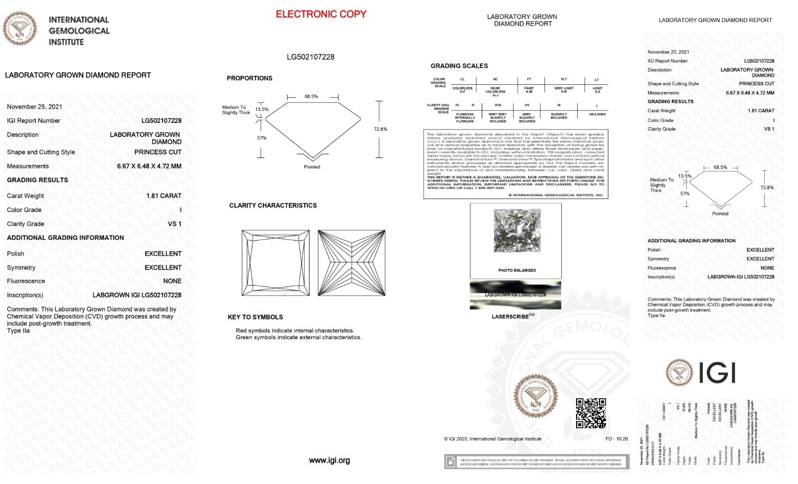 ? Please note that we will ship you same stone or exact similar stone with same color, clarity same carat weight certified stone. All Our Diamonds Are Certified And Laser inscripted.all of our diamonds are tested and certified with labs like IGI, GIA ,Etc.LabIGIReport #-ShapePrincessCarat3.02ColorIClarityVS1Cut-PolishExcellentSymExcellentFluorNoneLocationNew York, United StatesDepth74.1%Table69%GirdleSlightly ThickCrown14.0%, 46.9Pavillion56.0%, 38.1CuletNoneMeas7.66 x 7.65 x 5.67Ratio1.00BGMNoneGrowth TypeCVDPlease note that we are listing all of our stone's color clarity grade as per IGI Lab Report. IGI Lab is the 2nd most reputable trustworthy Lab after GIA. Every person can have a different opinion about the color clarity of the stone. So the stones you are getting can be one or two grades lower in color clarity grade as per GIA standards but as IGI standards those are as mentioned in the listing. I am not sure how practical it is to use $75000 (3 Carat E VS!) Natural Diamond stone standard for the same color clarity grade (3 Carat EVS1) Lab Grown Stone which you are getting for $750. My advice to you is whatever authenticity says please please get the stone if you do not like then I will accept the return without any question in the next 30 days of purchase. I don't want you to miss the great opportunity to buy those beautiful lab grown stones which are 100% the same chemical other properties wise as natural Diamonds at 1% of price compared to Natural Diamond.